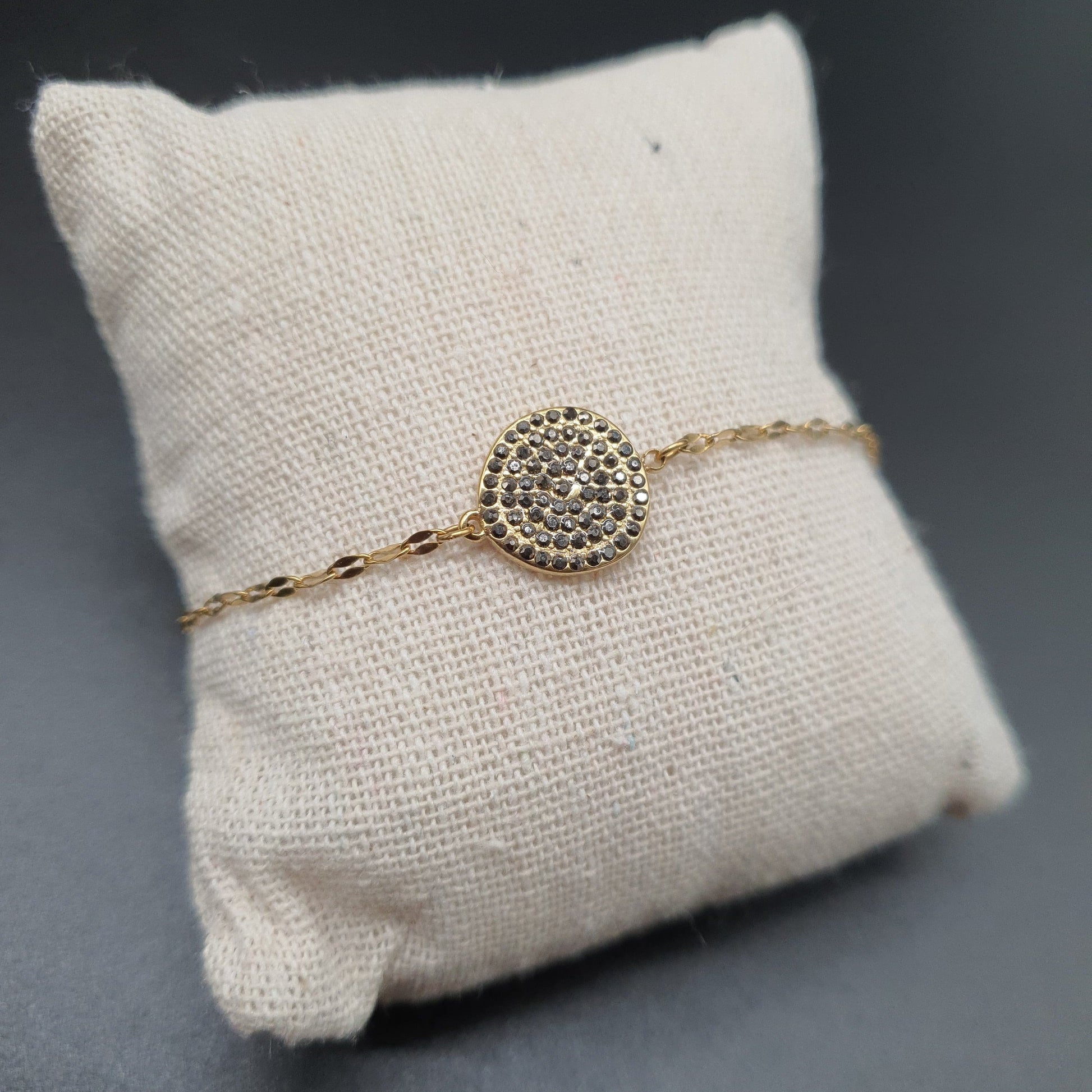 Bracelet acier doré fine chaîne maille fantaisie torsadée pièce métal doré strass