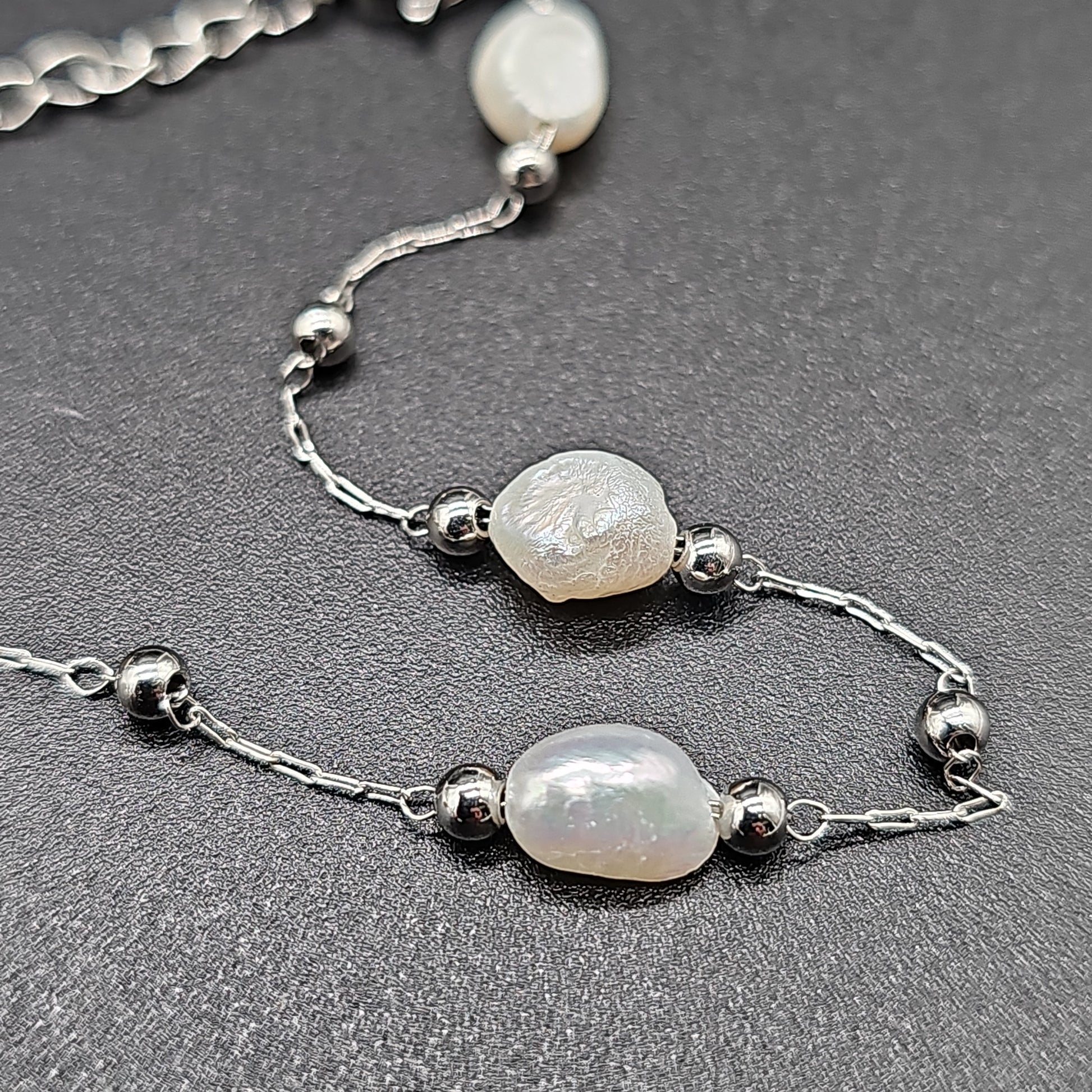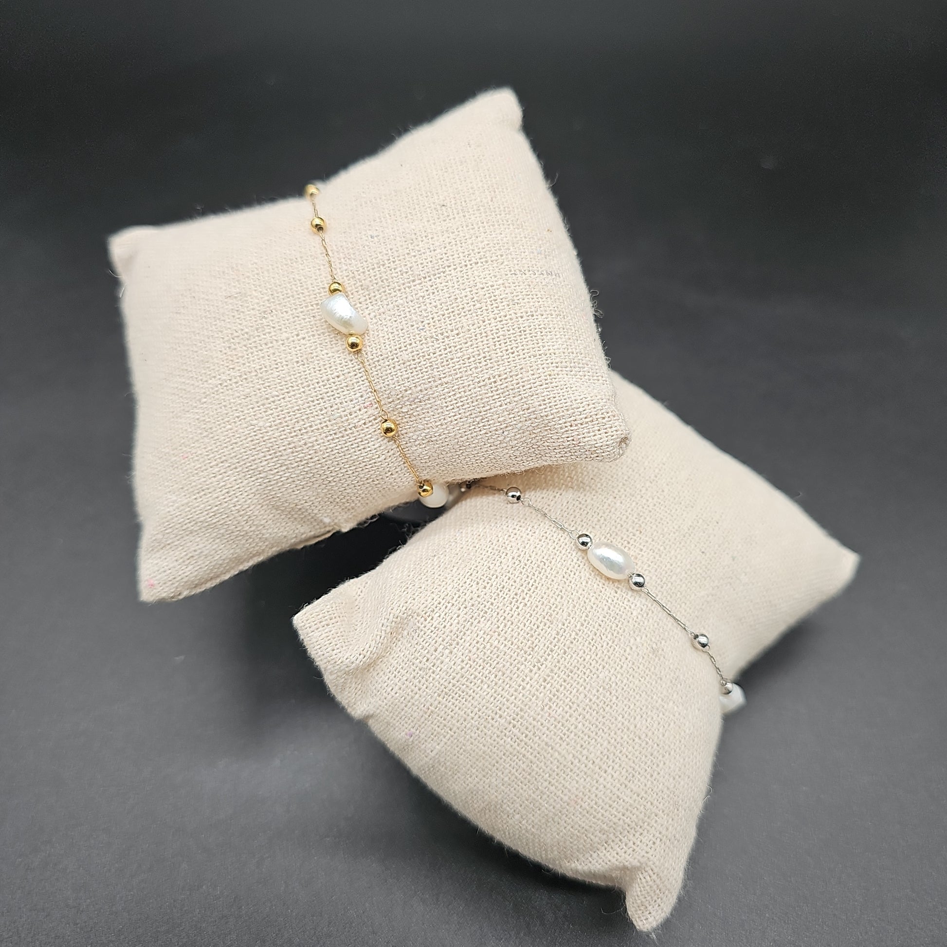 Bracelet chaîne fine acier inoxydable – billes et pierres reconstituées, doré ou argenté