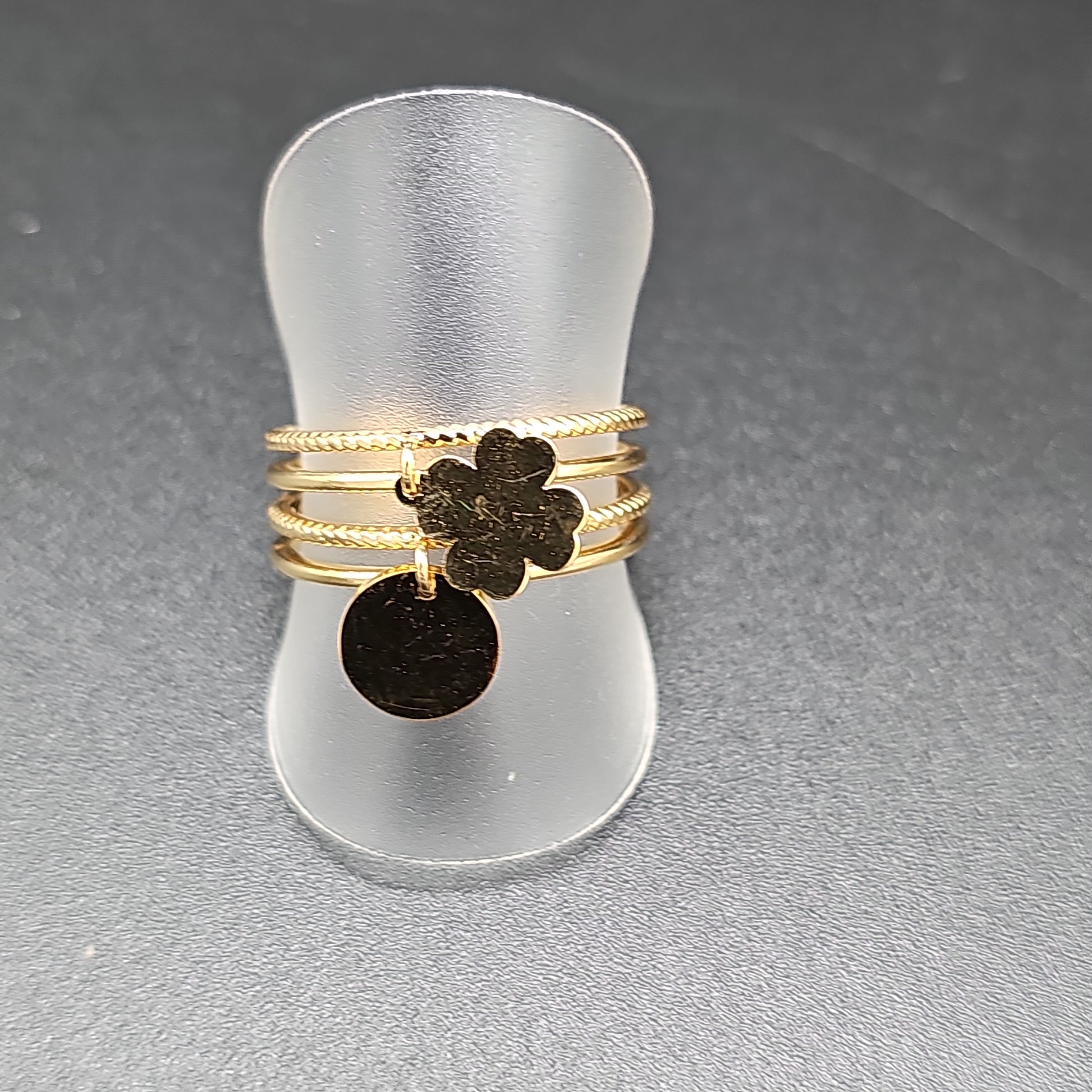 Bague multi-anneaux dorée ajustable acier inoxydable trèfle et pastille