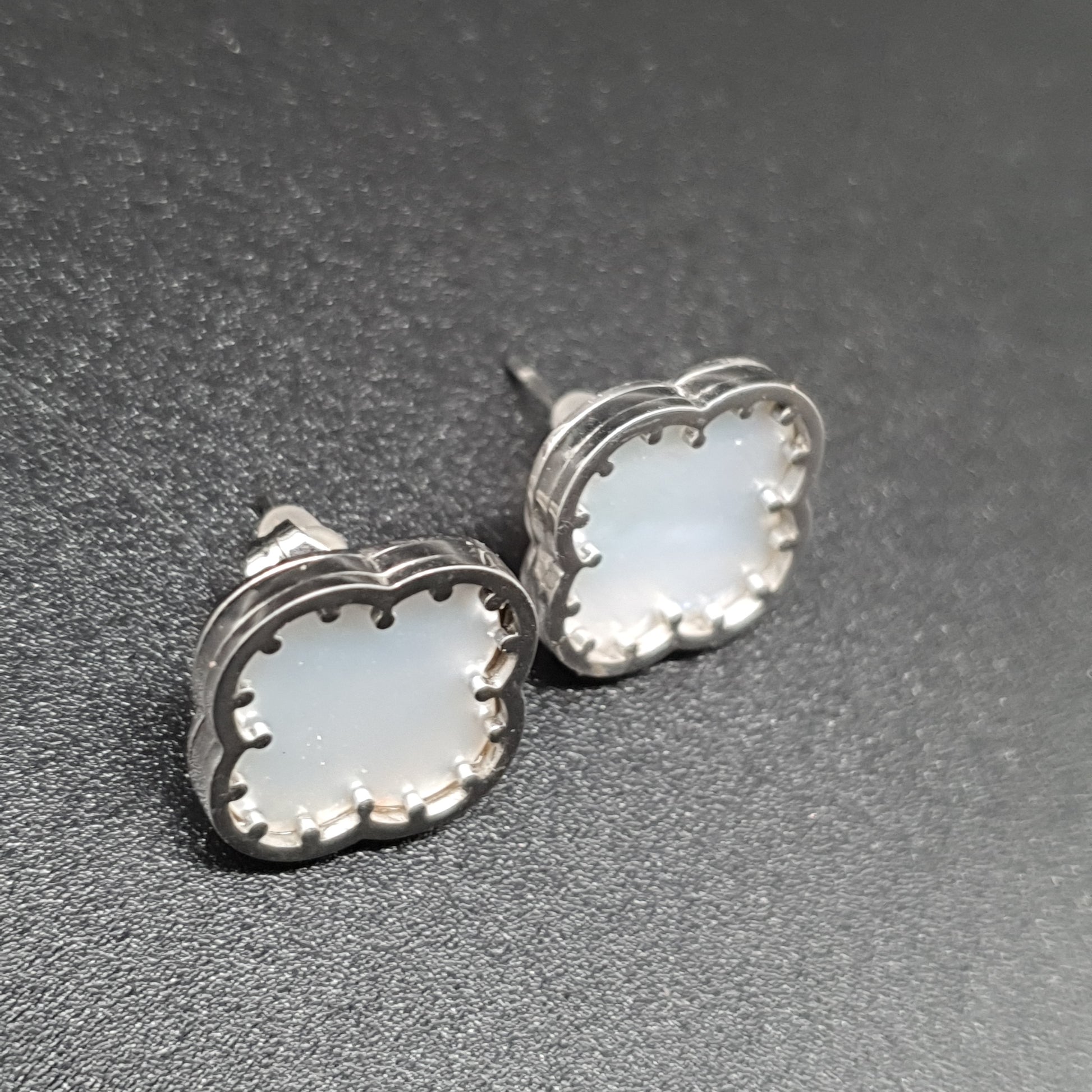 🌸 Boucles d’oreilles clous en acier inoxydable, ornées d’un motif floral délicat en nacre blanche véritable. Une création à l’esprit raffiné et romantique, inspirée du charme intemporel des fleurs de lilas.