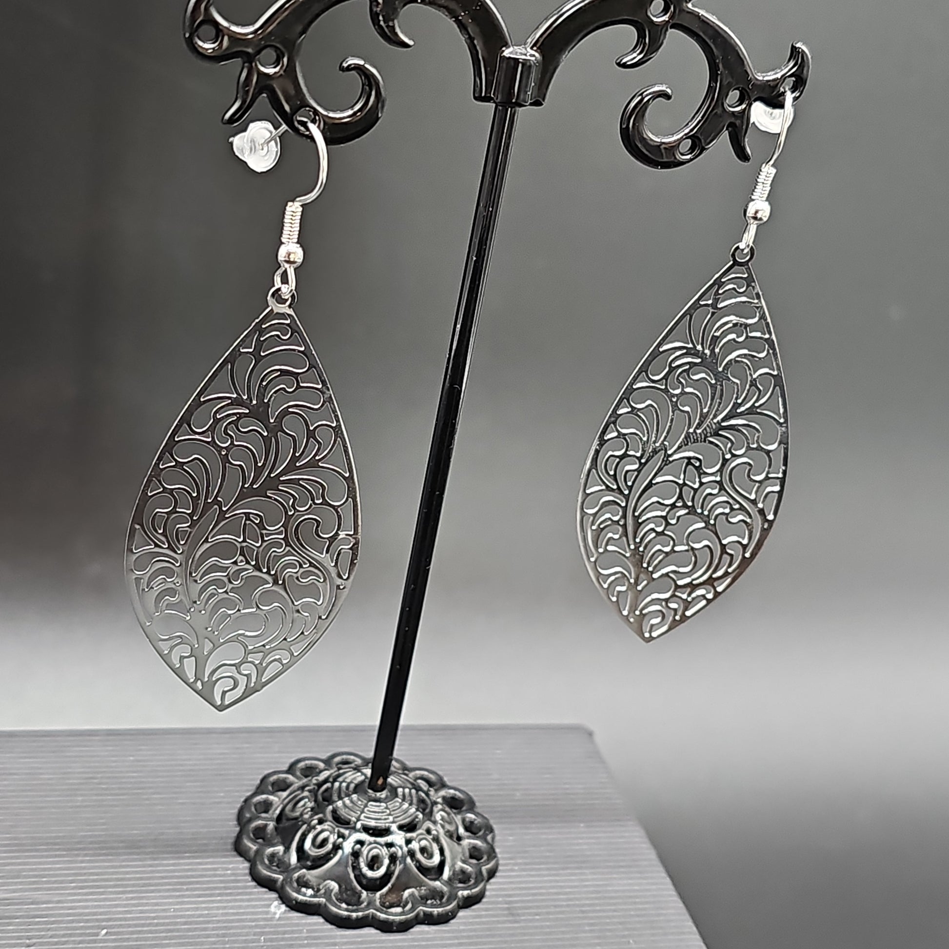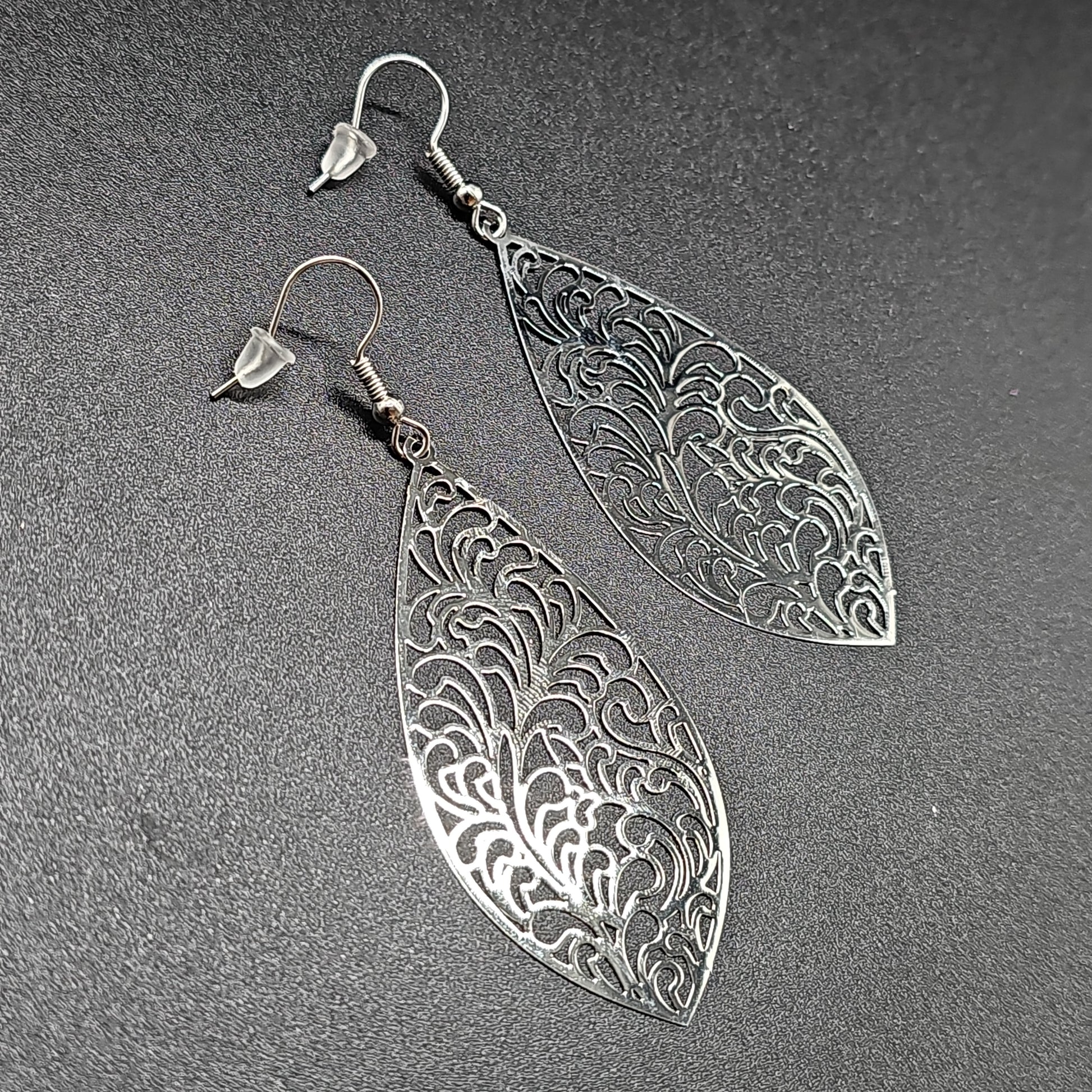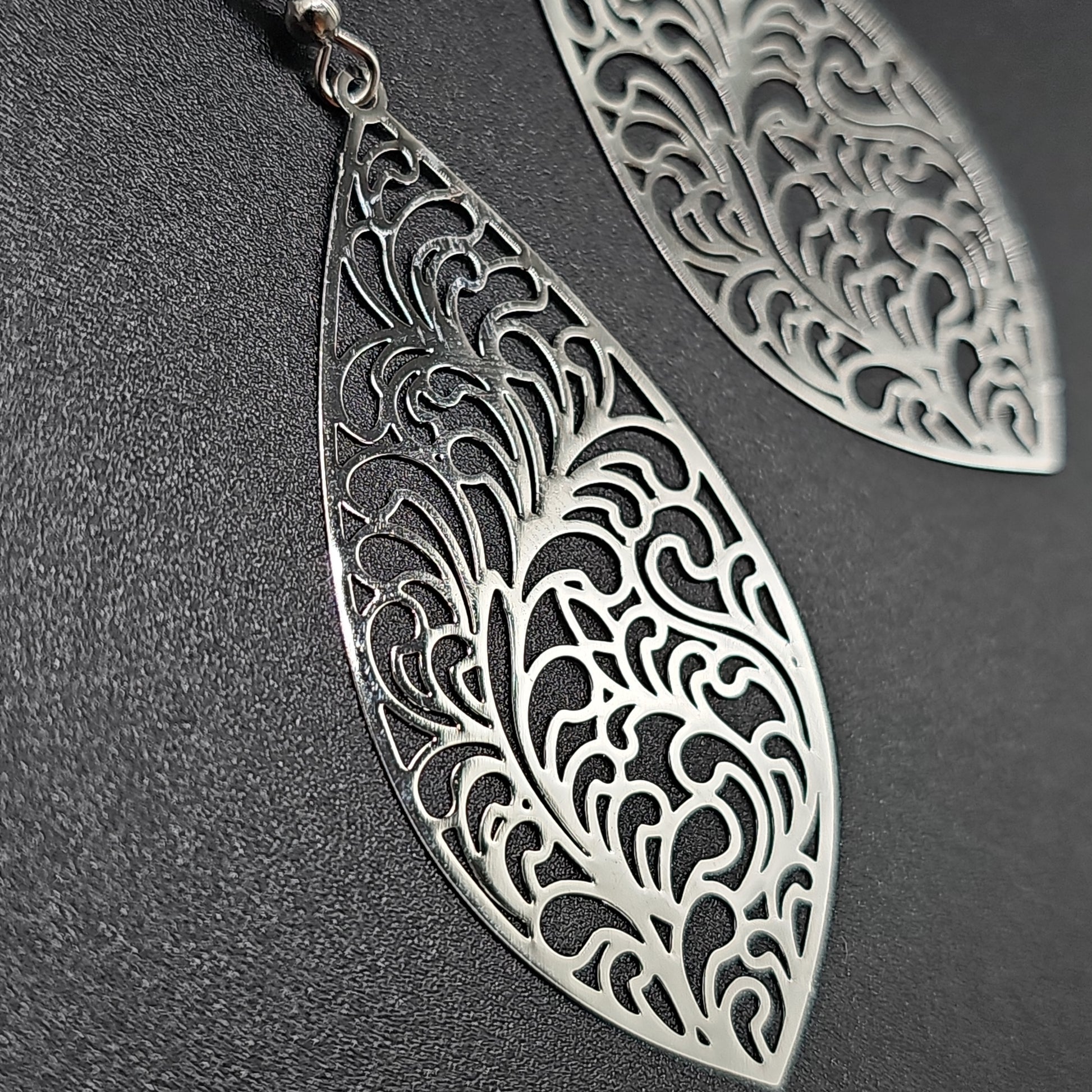 Boucles pendantes filigrane ovale – acier inoxydable argenté floral