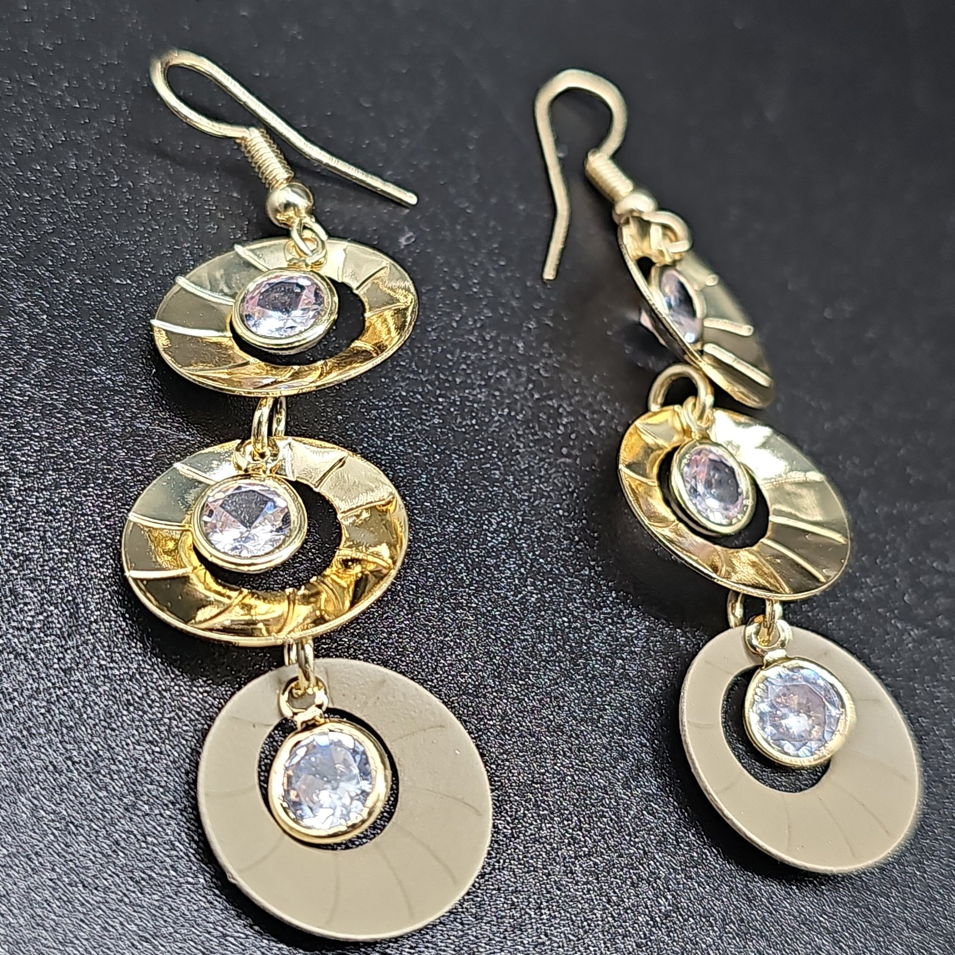 ✨ Boucles pendantes 3 disques – strass & mouvement
