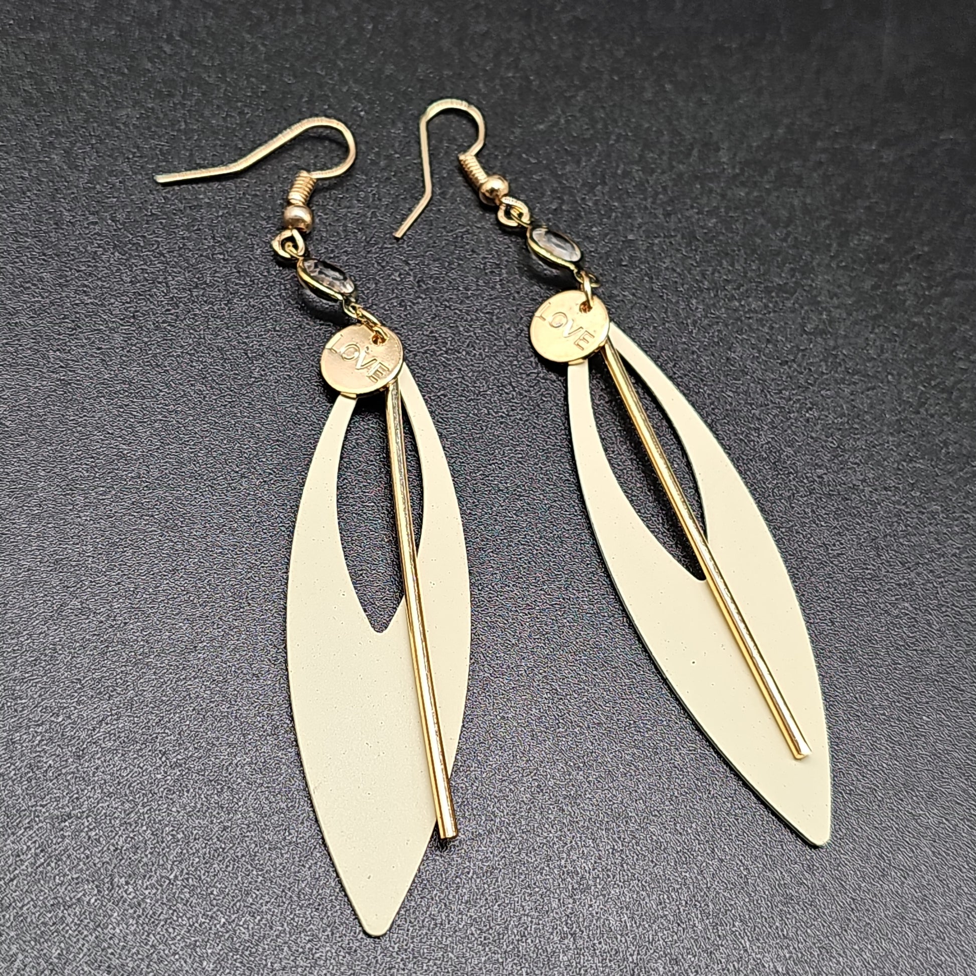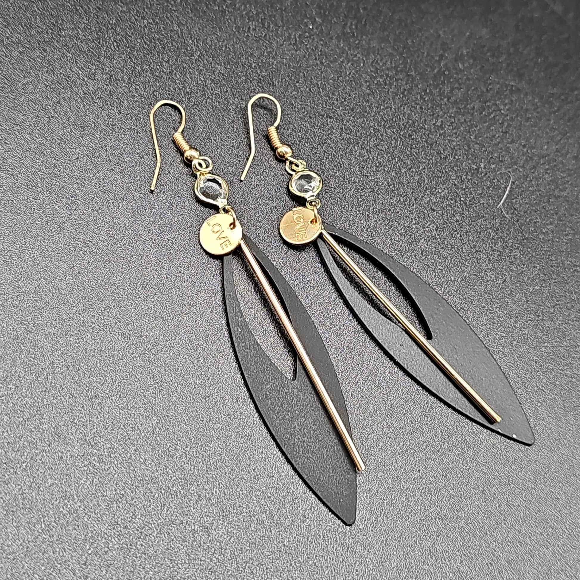 Boucles pendantes géométriques LOVE – ovale ajourée & tige dorée