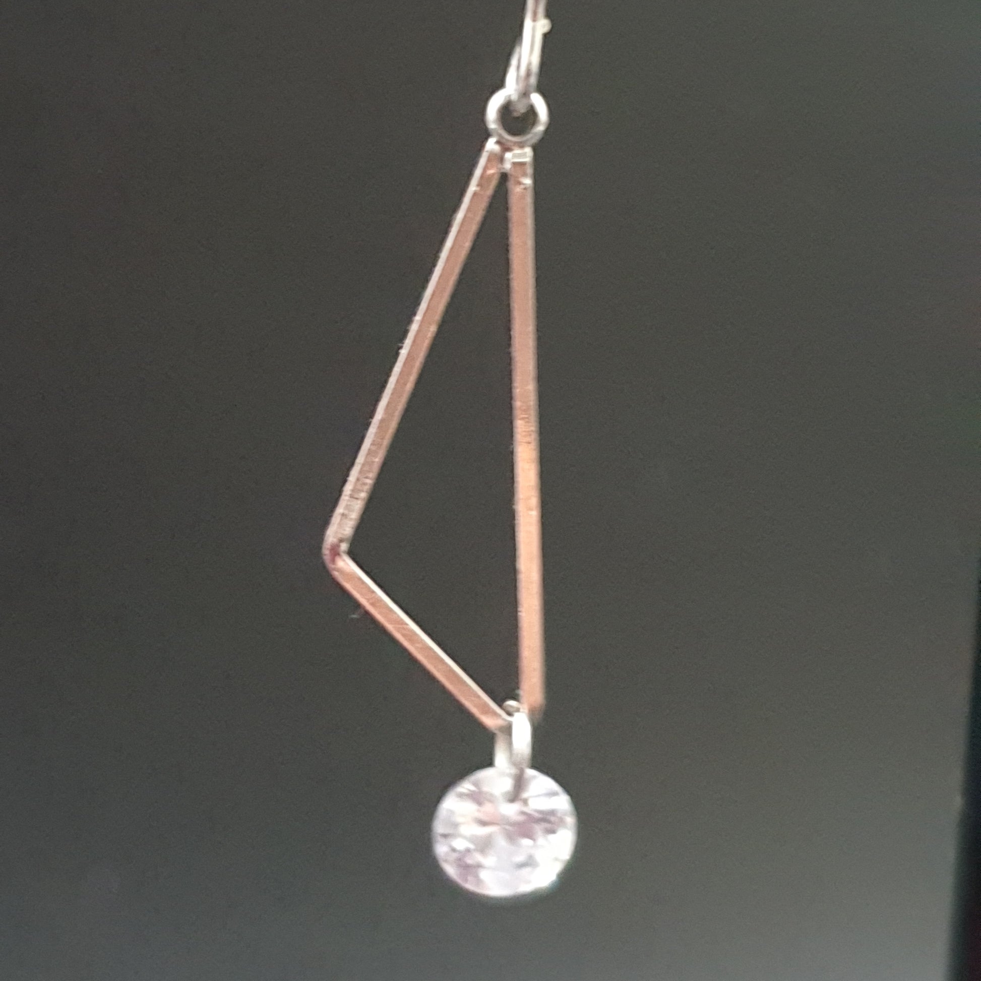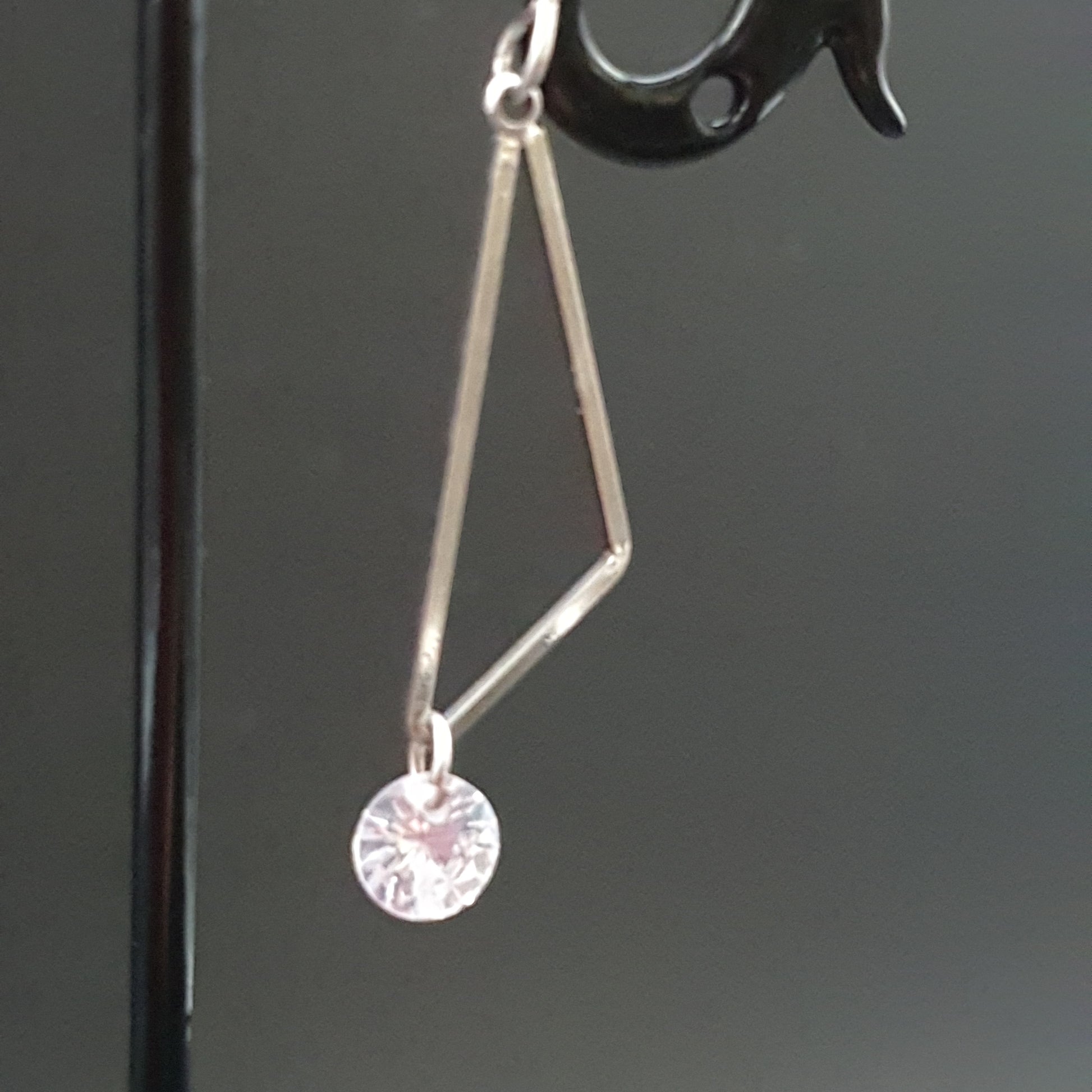 Boucles pendantes triangle argenté – cristal facetté suspendu
