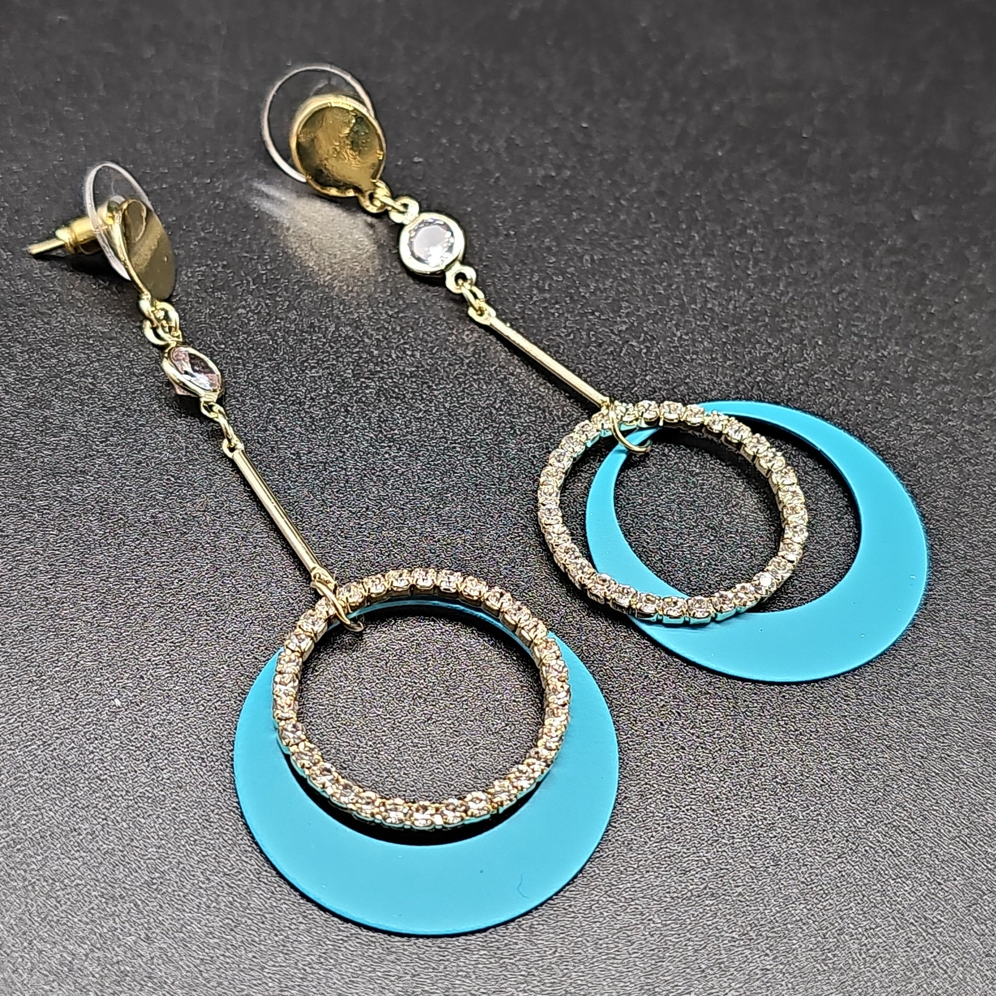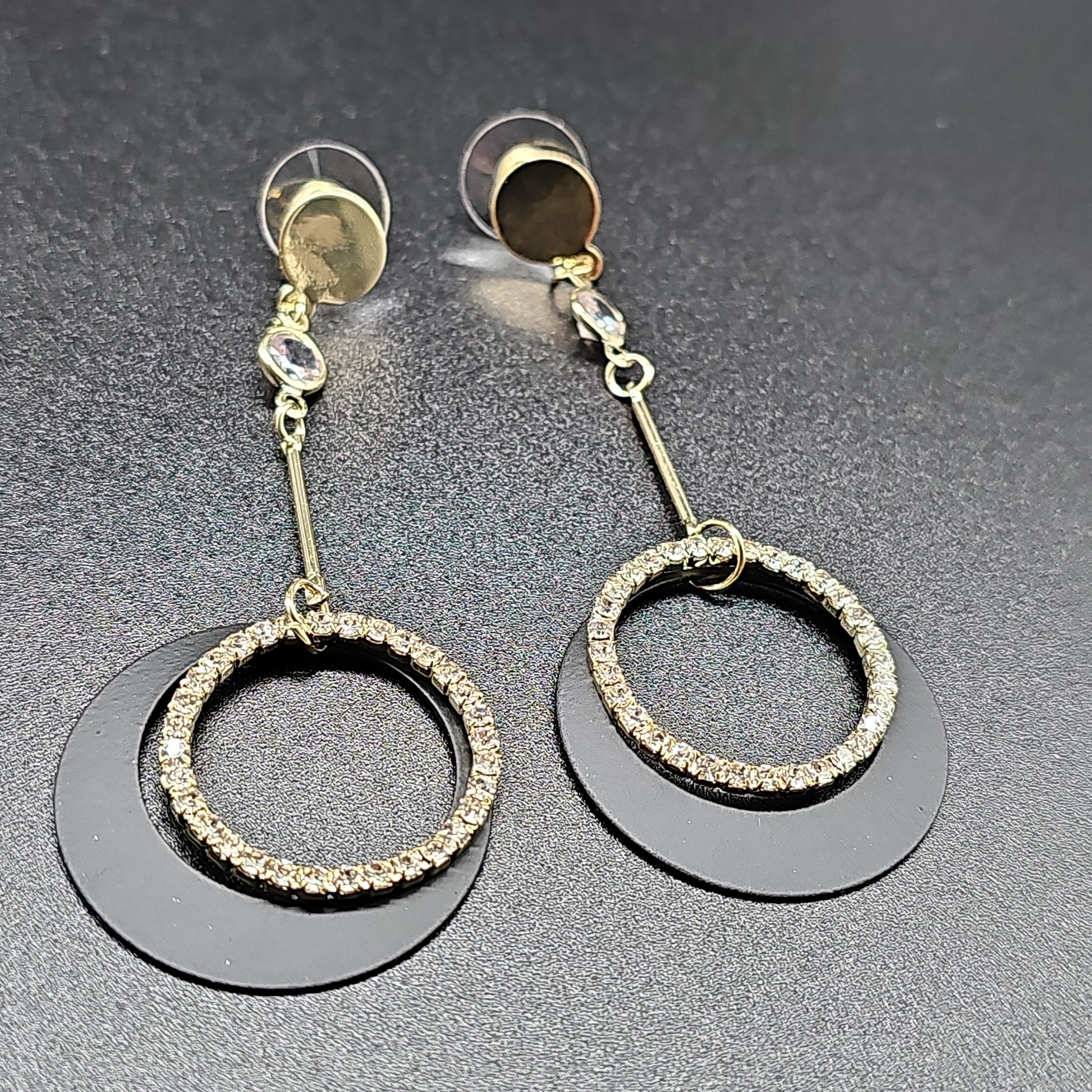 Boucles pendantes pierre lune & anneau – acier inoxydable doré