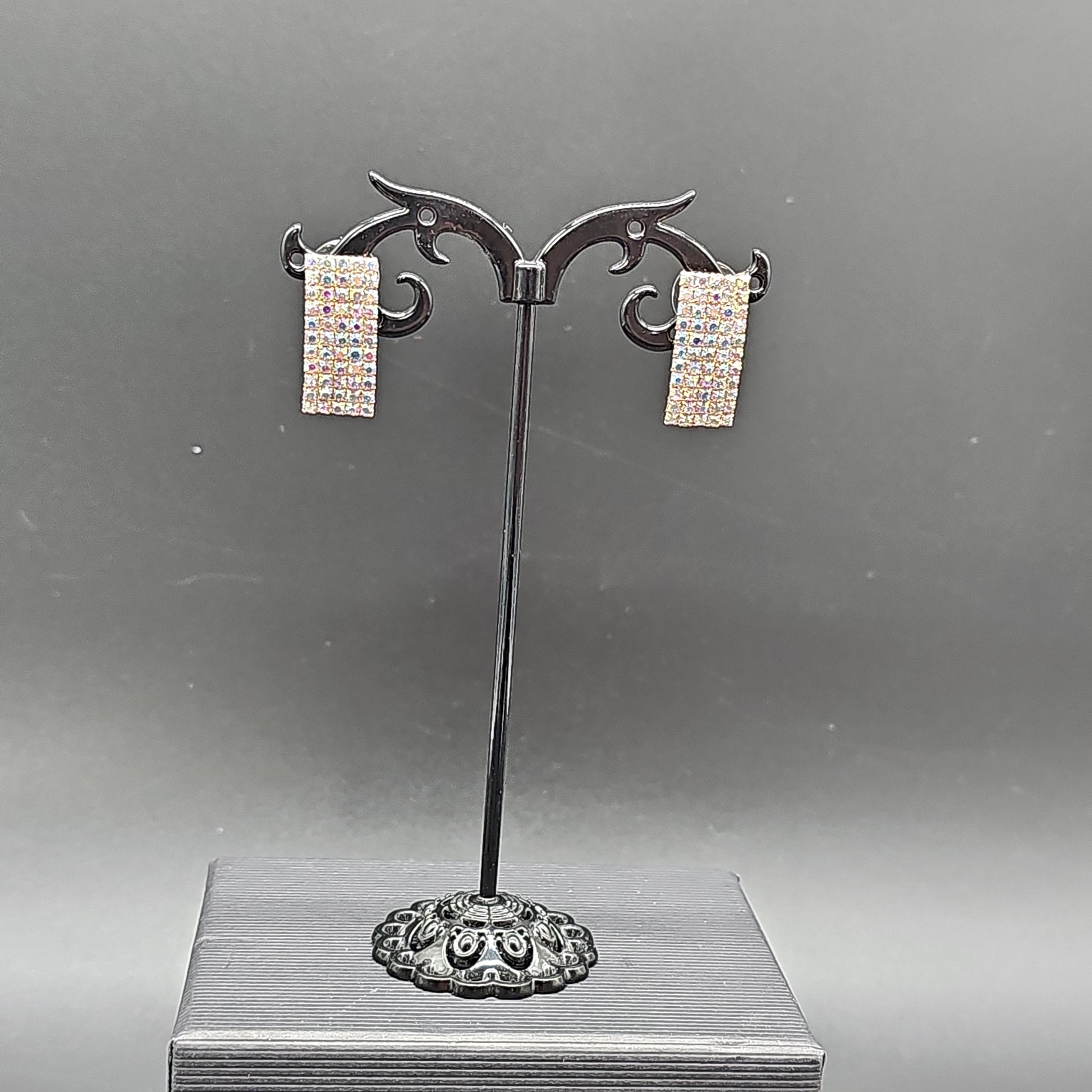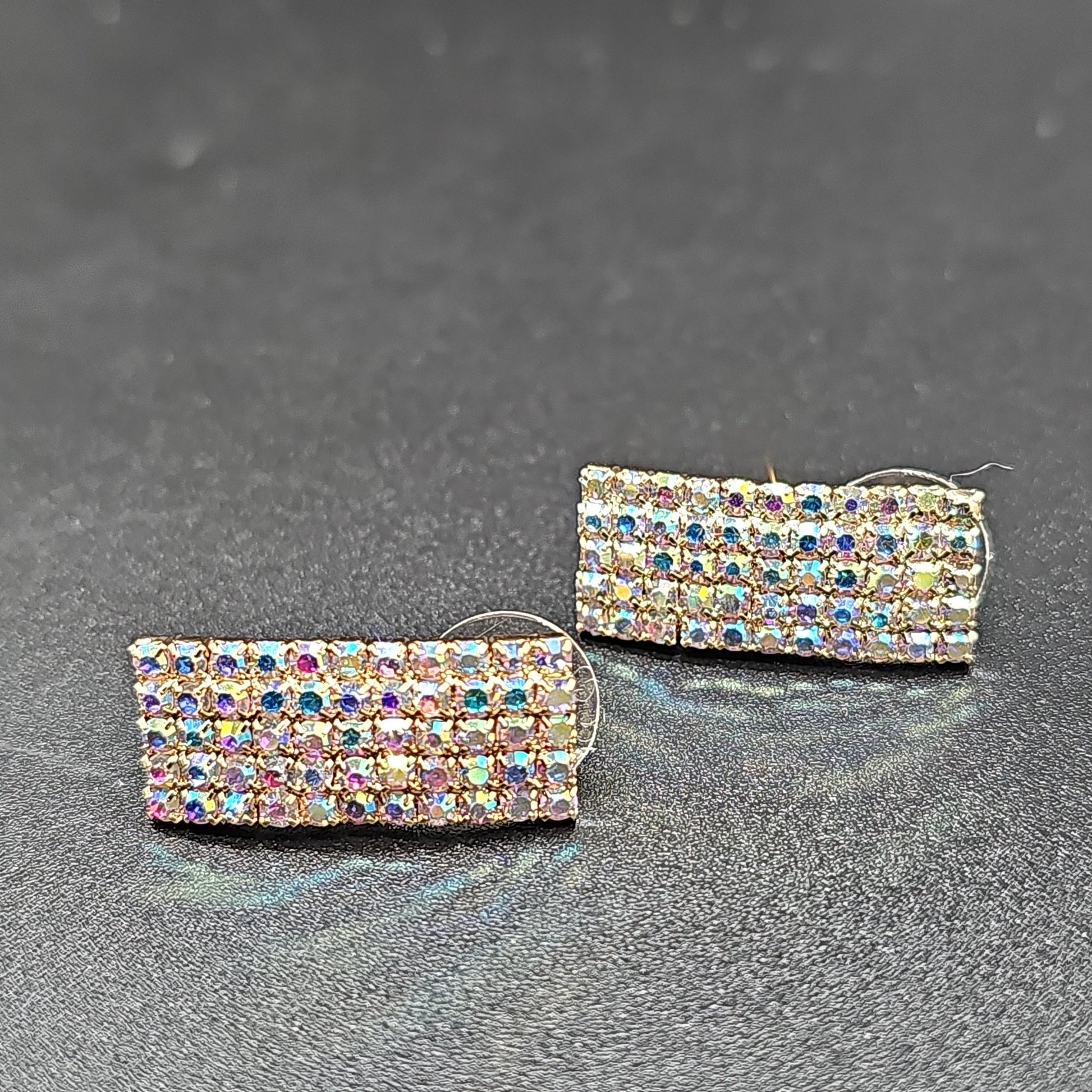 ✨ Boucles pendantes géométriques en forme de rectangle, en acier inoxydable doré, décorées de 5 rangées de strass multicolores pour un effet lumineux garanti.