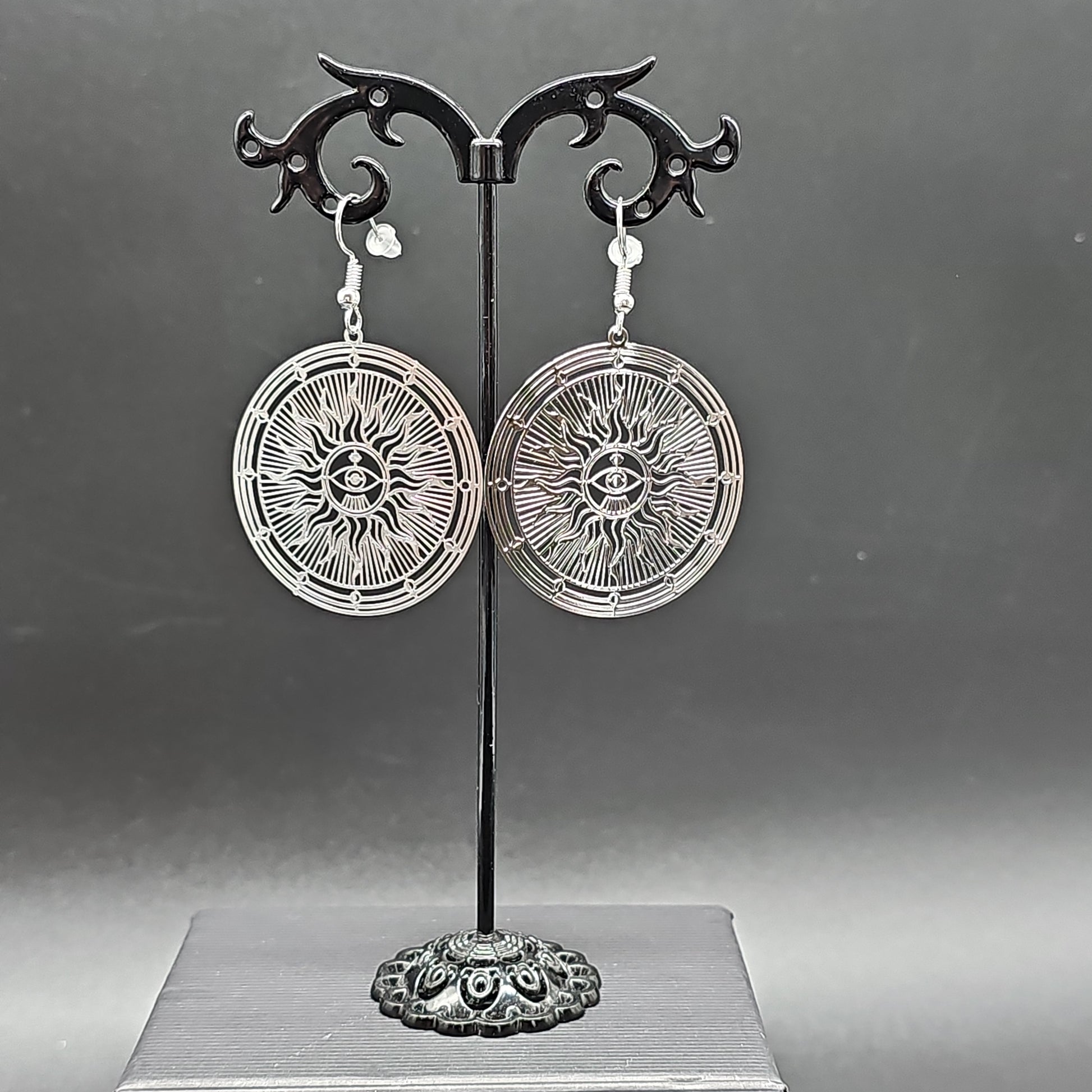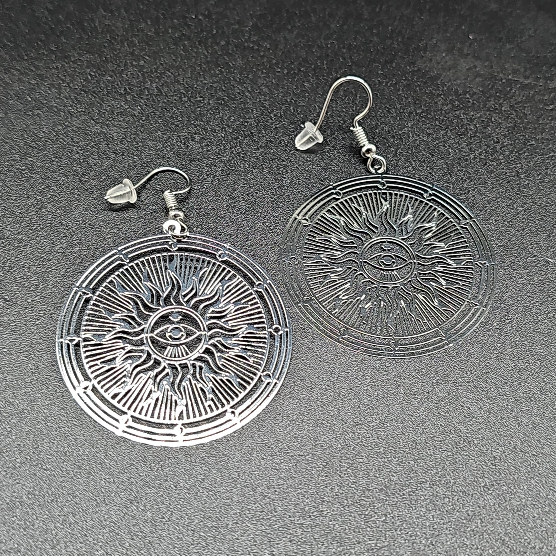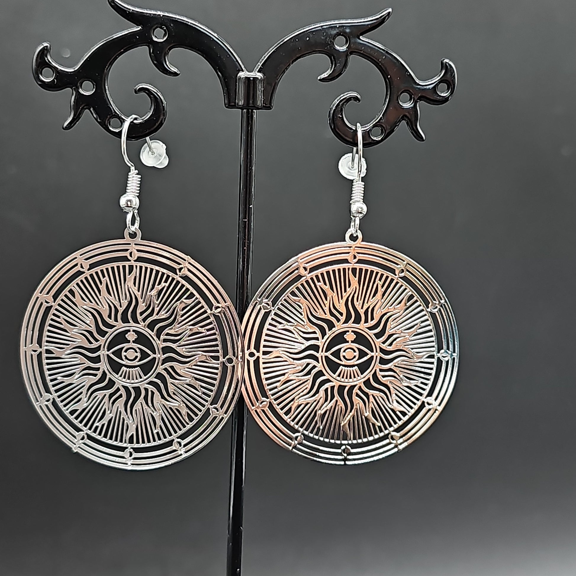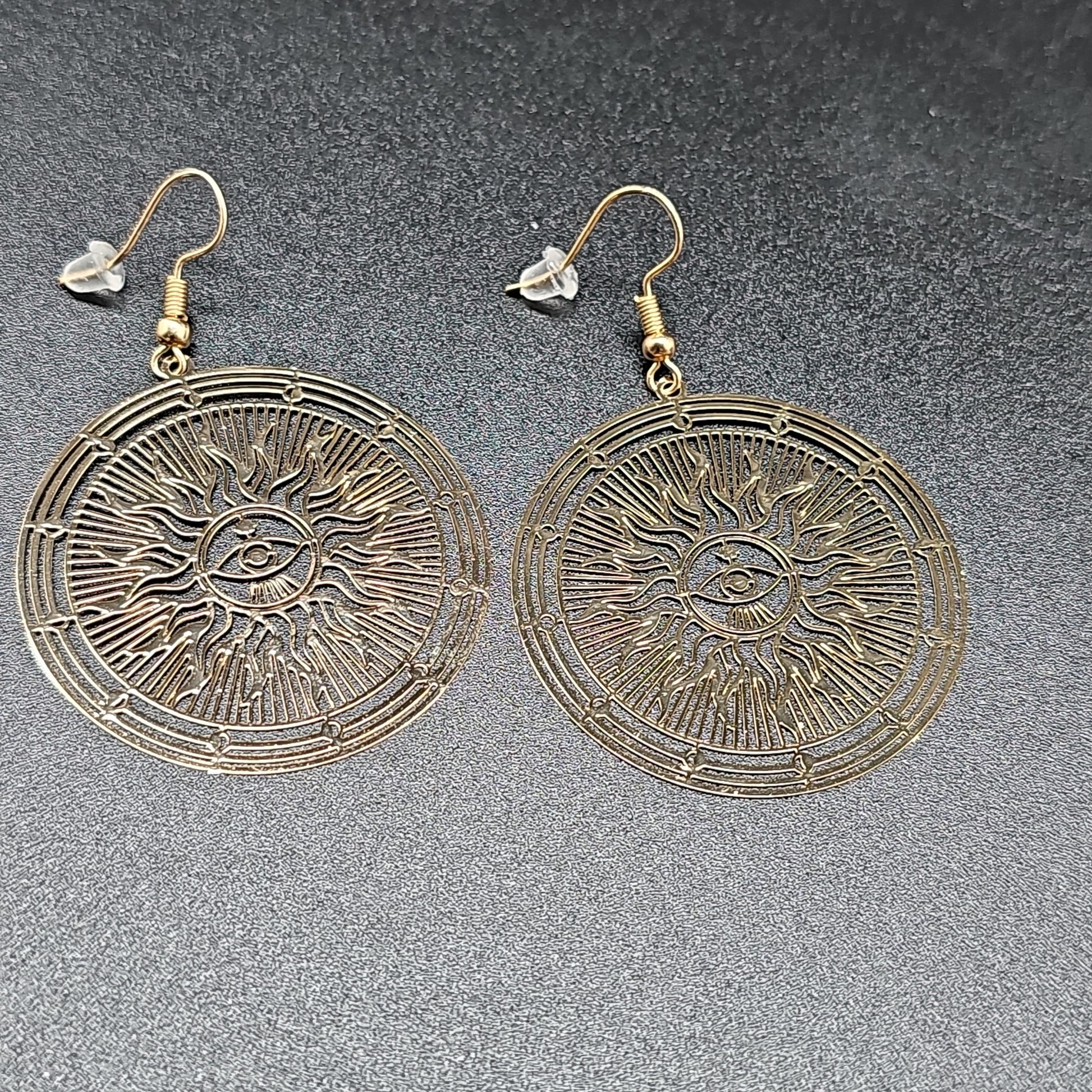 Boucles pendantes motif soleil acier inoxydable doré ou argenté
