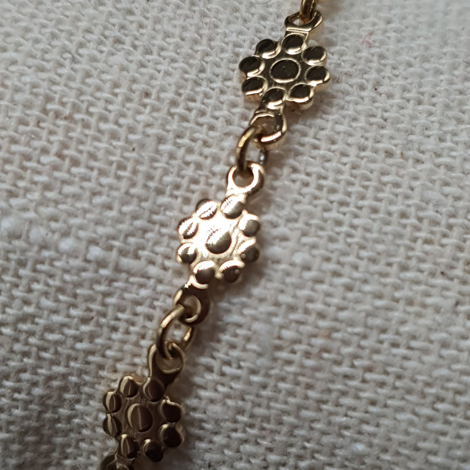 Sa fine chaîne en acier inoxydable doré est parsemée de petites fleurs ajourées, aux reflets délicats, pour une allure douce et féminine.