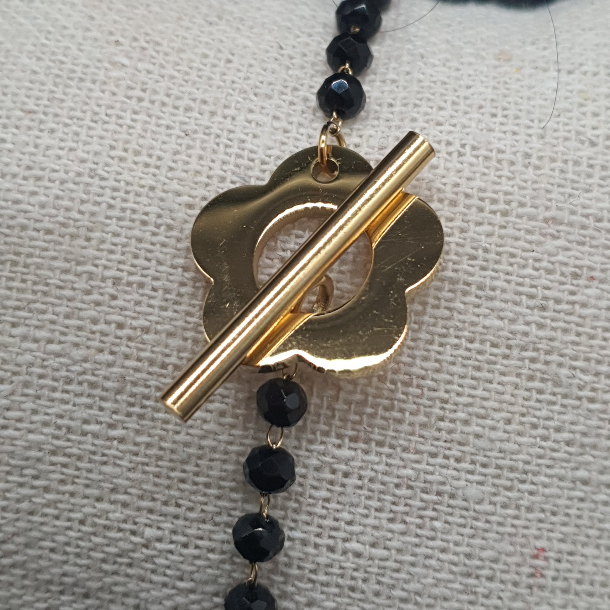 Bracelet chaîne fine acier doré perles facettées hématite – fermoir fleur