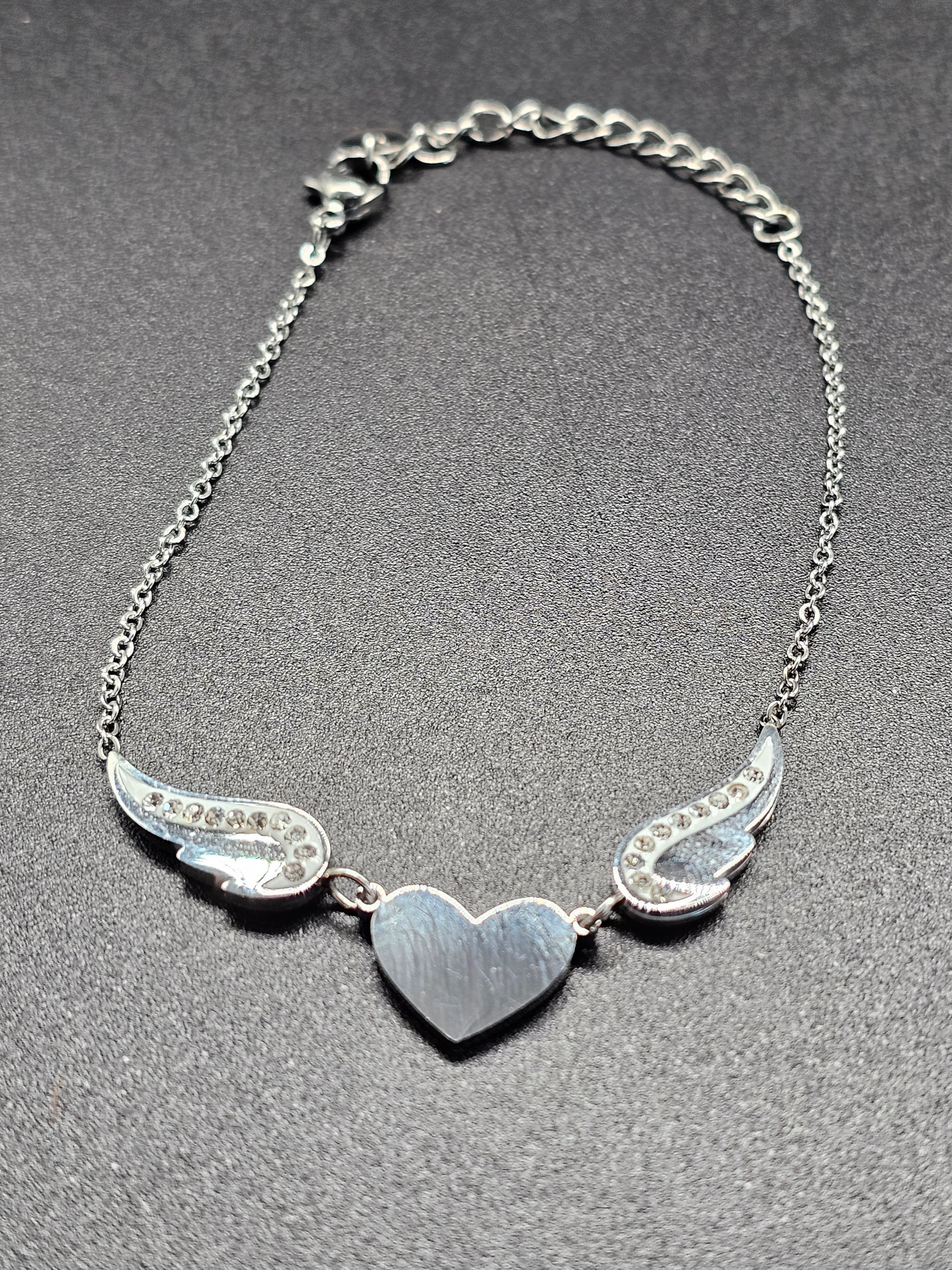 Bracelet doré en acier inoxydable – cœur et aile d’ange gravés strass