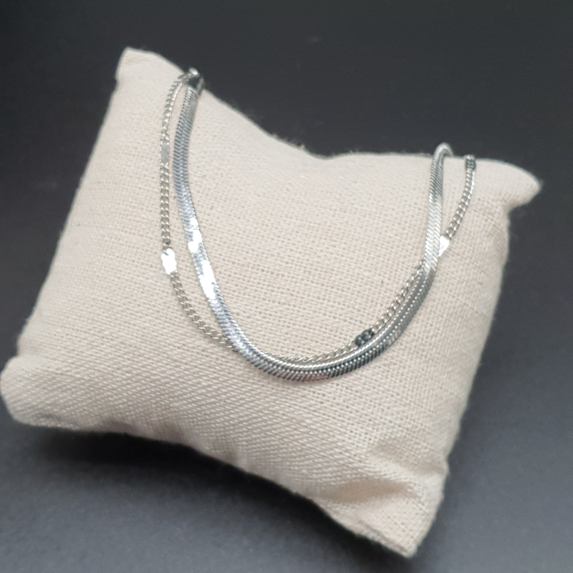 Bracelet double rang acier inoxydable argenté maille miroir et maille gourmette
