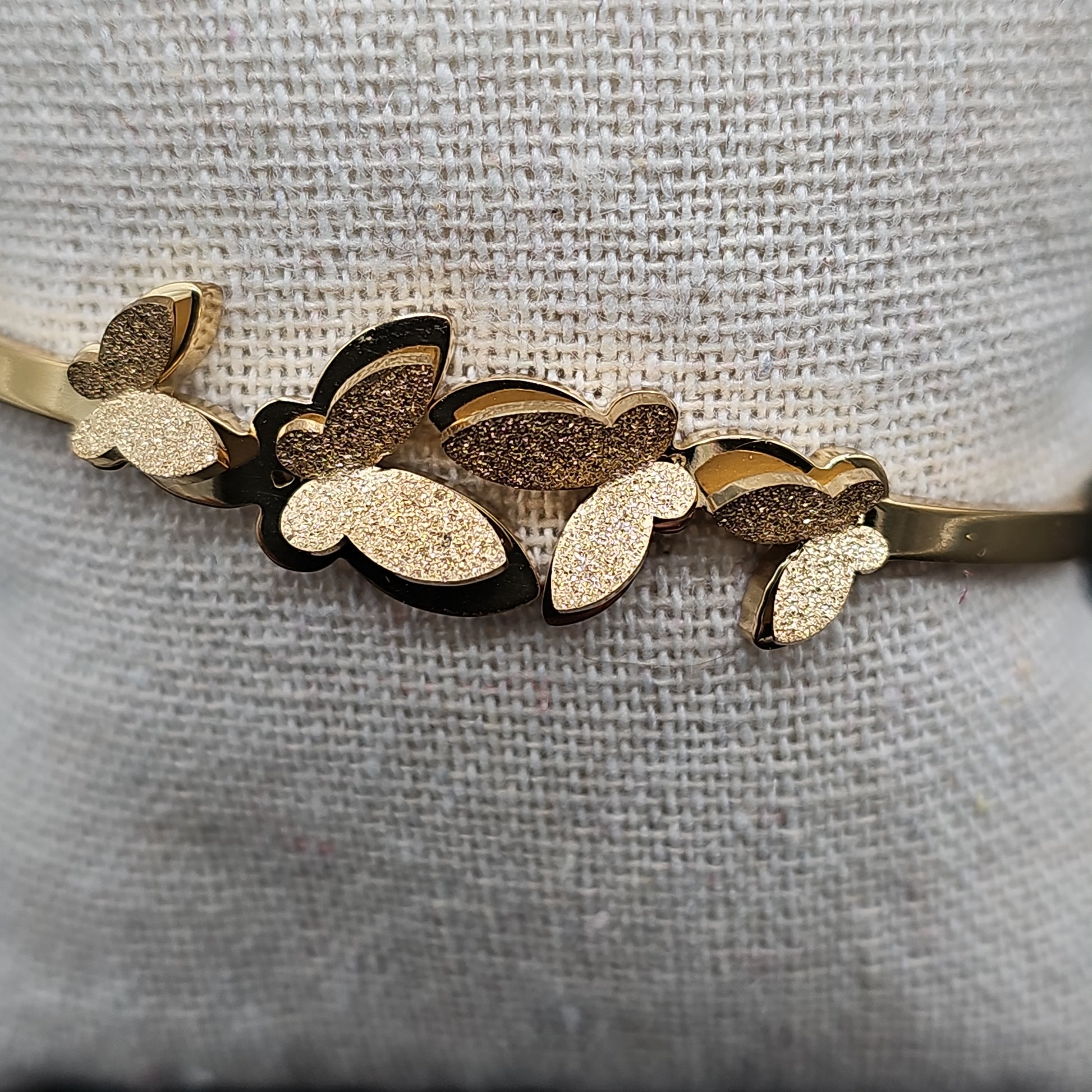 Bracelet jonc doré ouvrable – 4 papillons 3D ailes dorées
