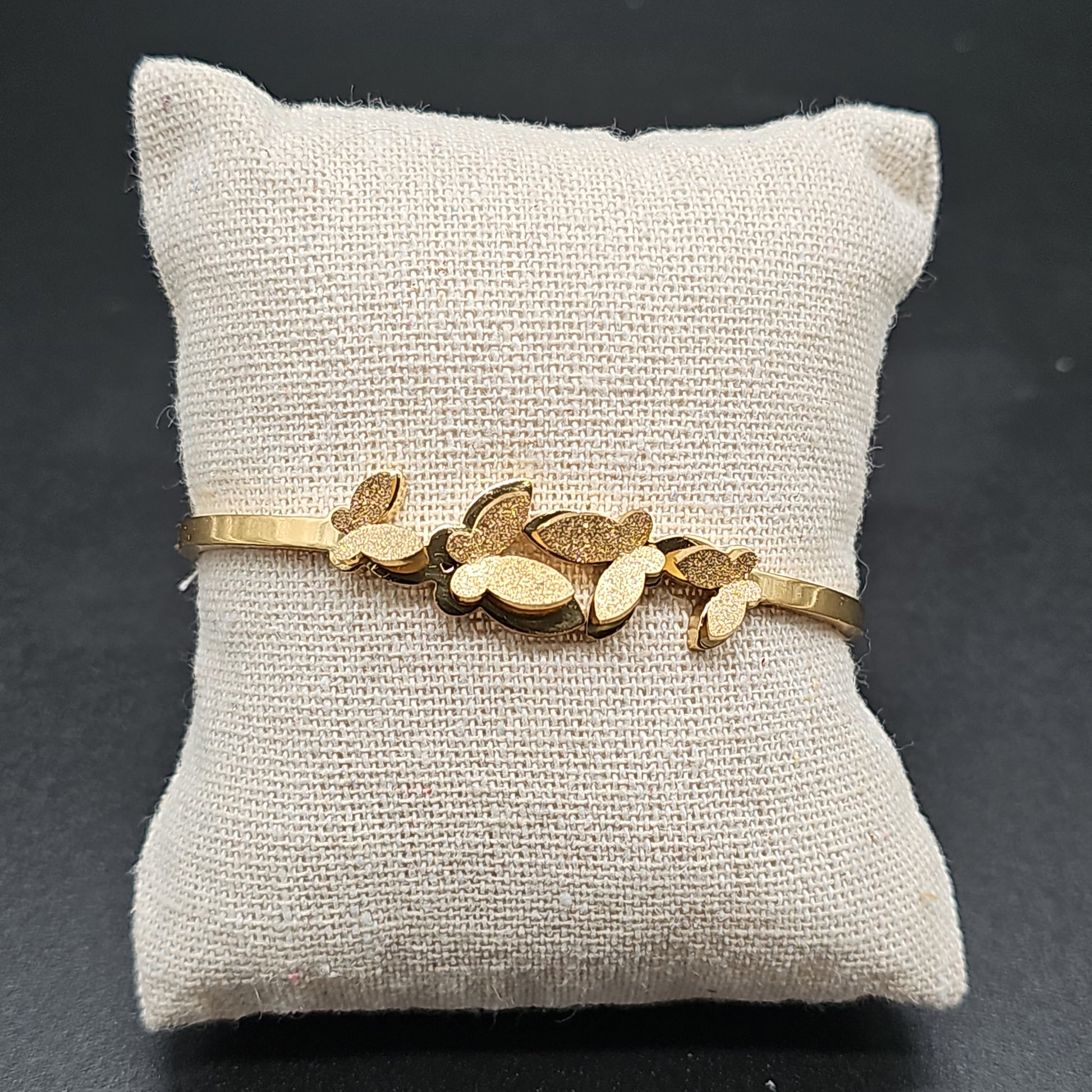 🦋 Léger, poétique et féminin, ce bracelet jonc doré est orné de 4 papillons en relief, délicatement posés autour du poignet.