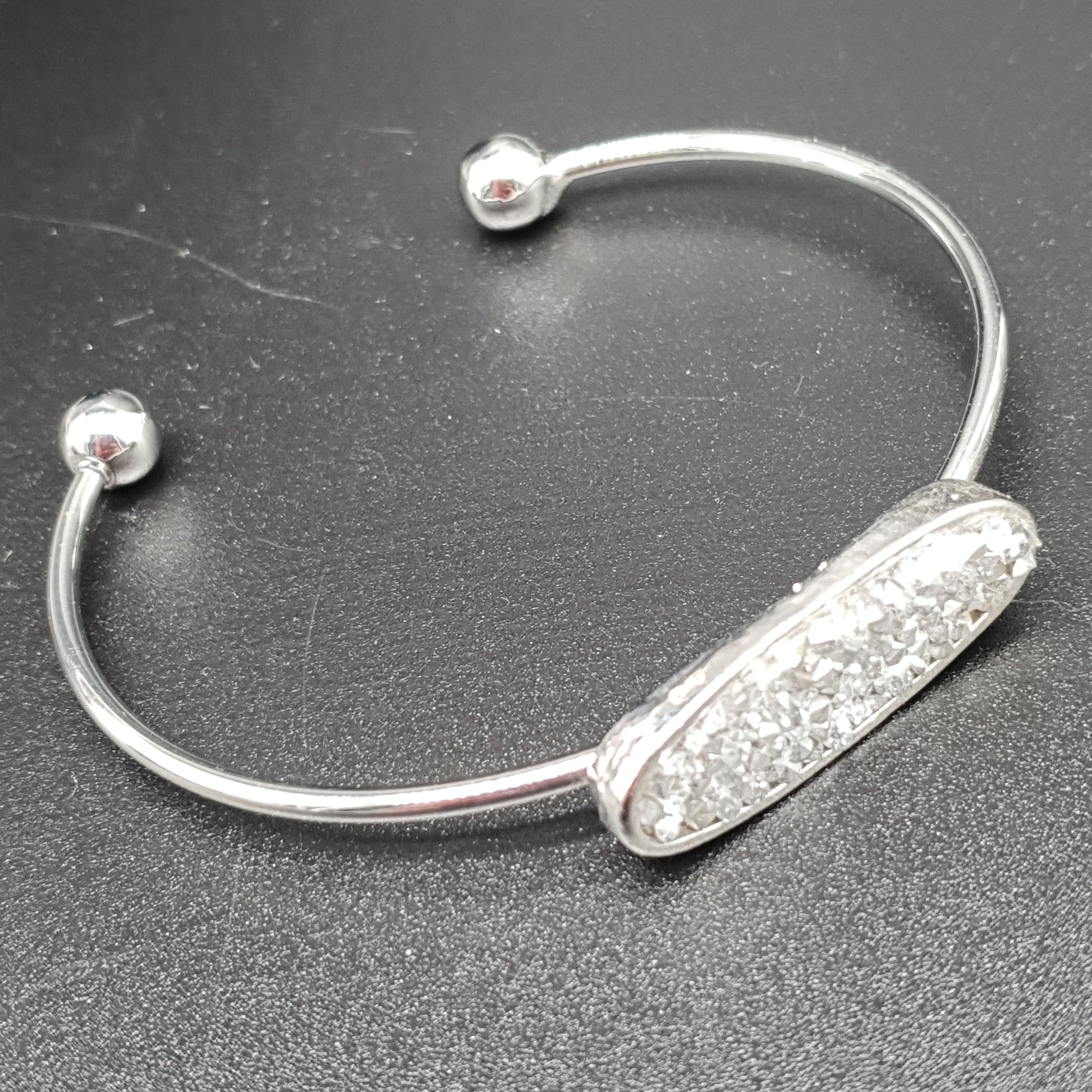 Bracelet jonc ouvert acier inoxydable argenté pièce ovale effet cristal