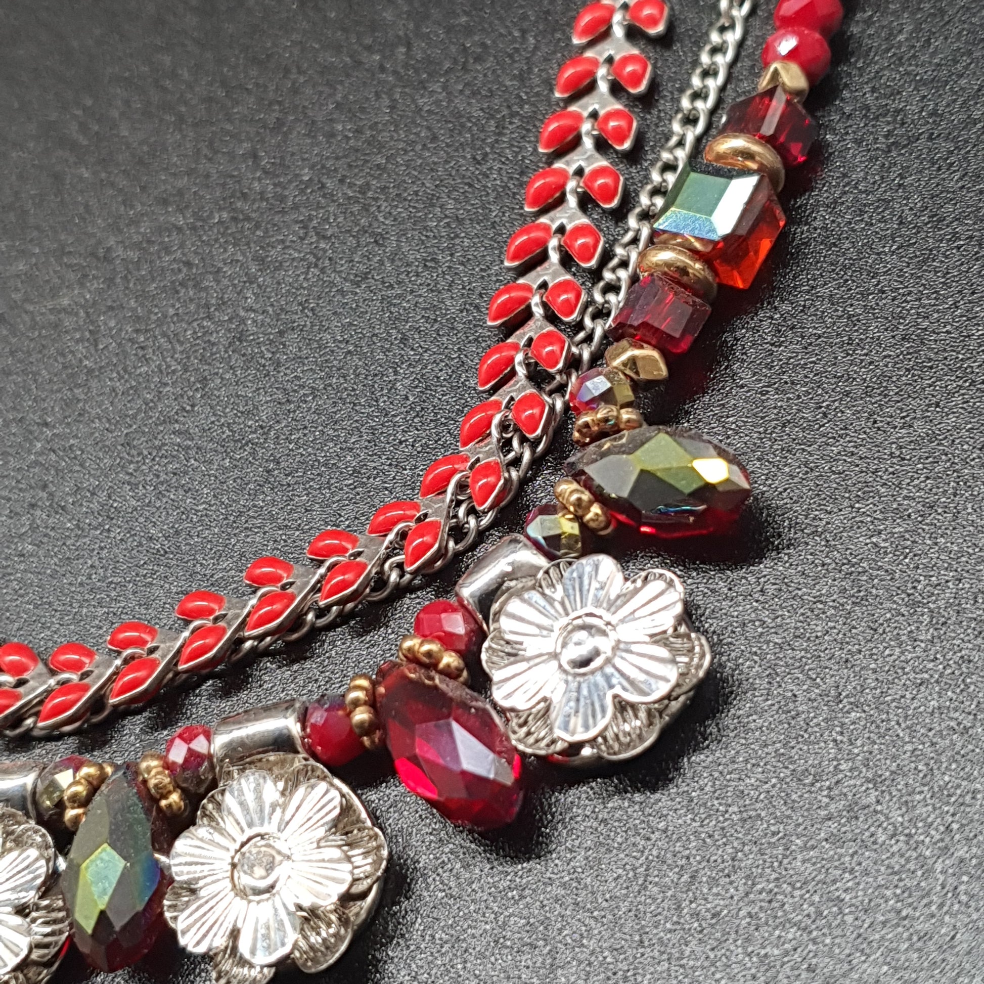 ✨ Collier tendance en acier inoxydable doré, orné de perles rouges émaillées et d’une chaîne maille grain de café ultra stylée. Le design joue sur le contraste entre le métal doré et l’intensité de l’émail rouge pour un rendu moderne et élégant ❤️.
