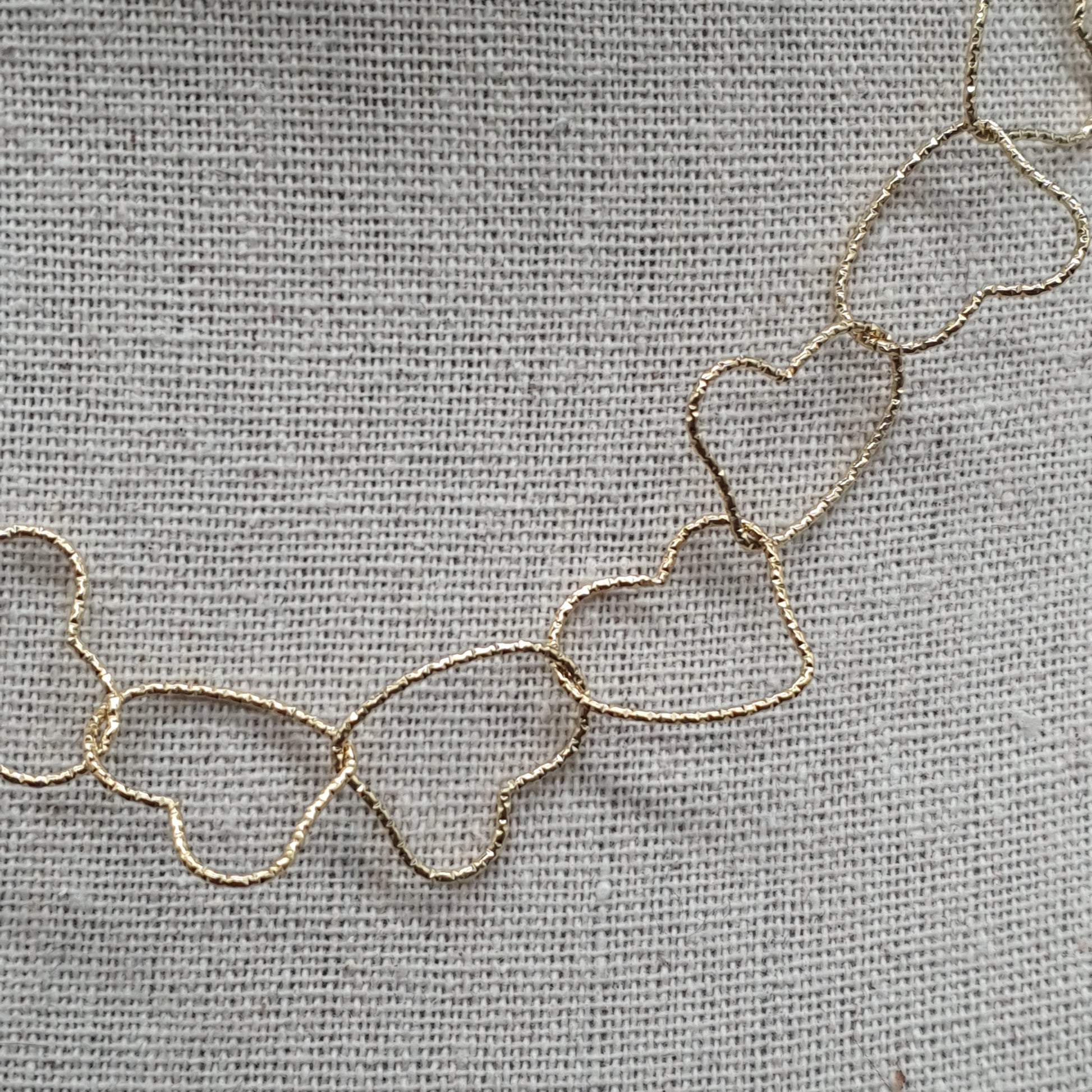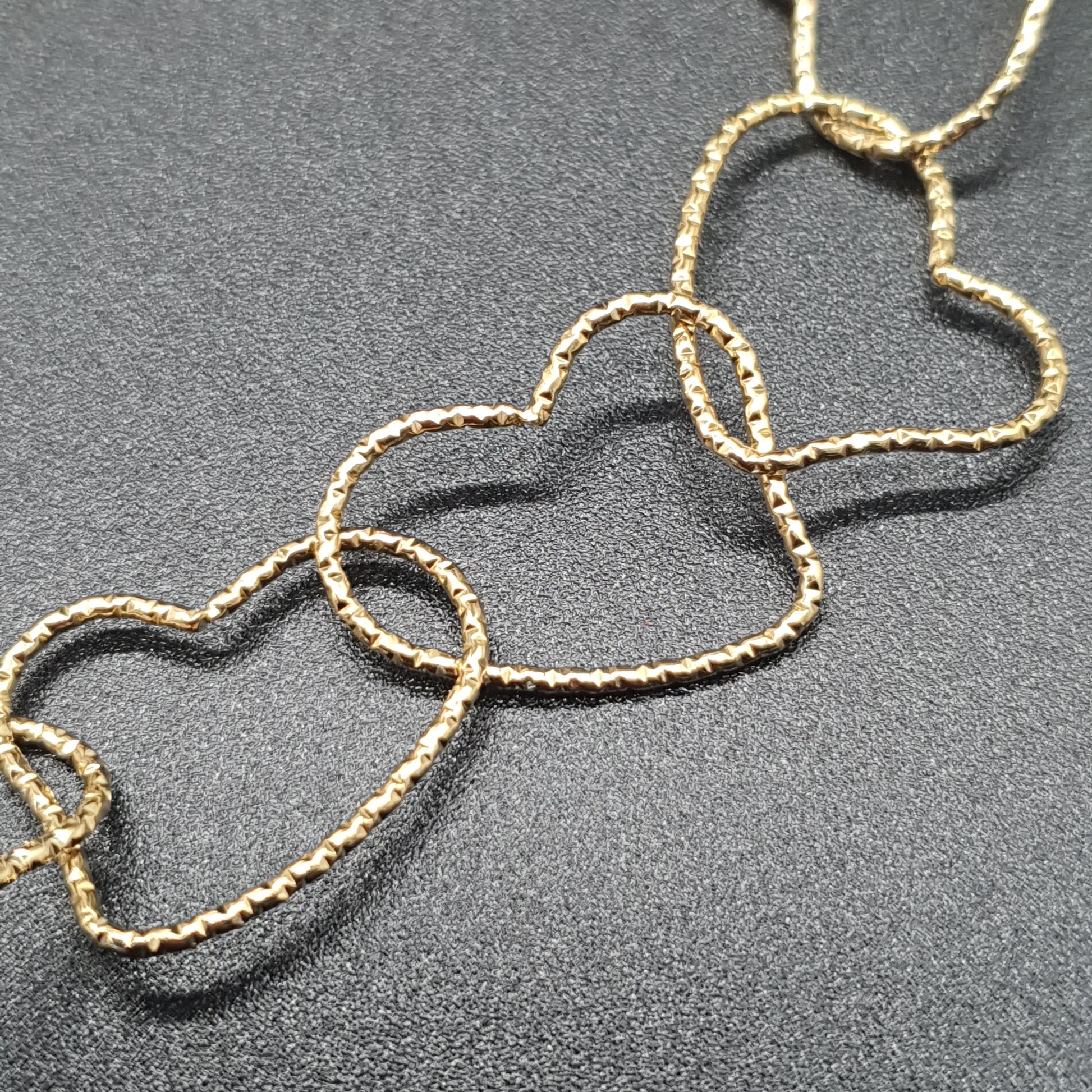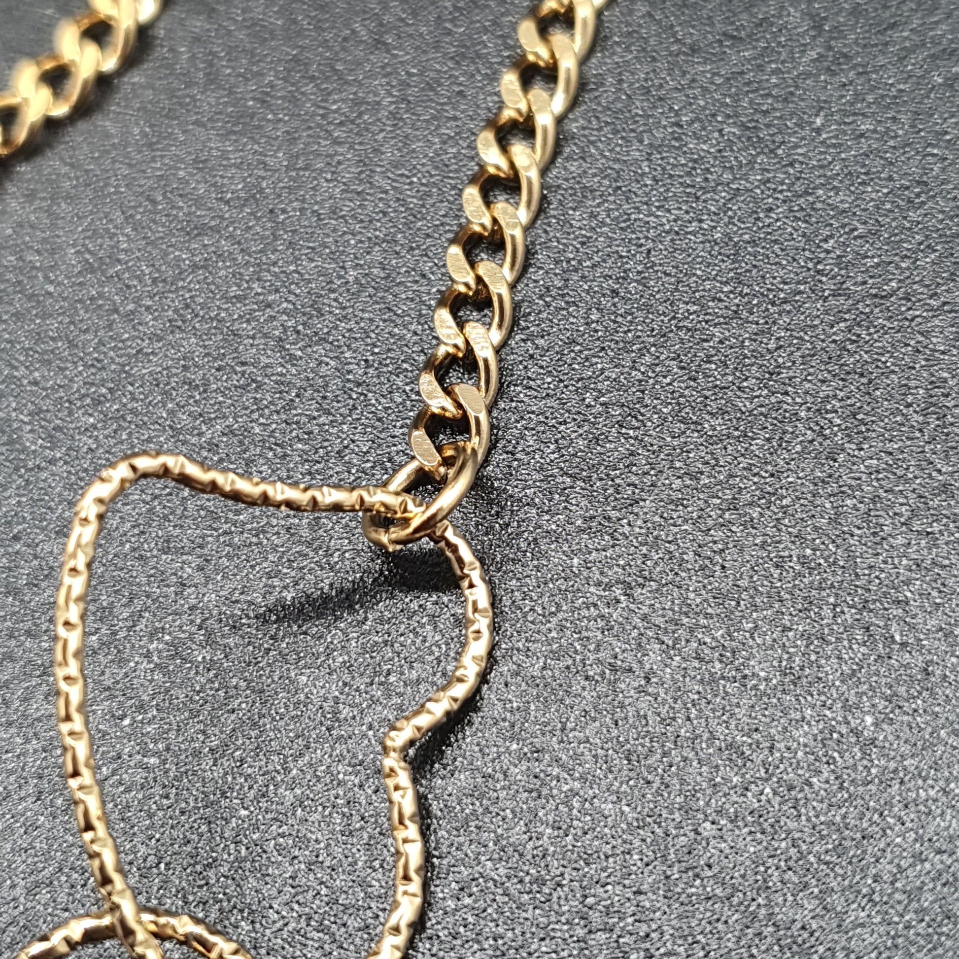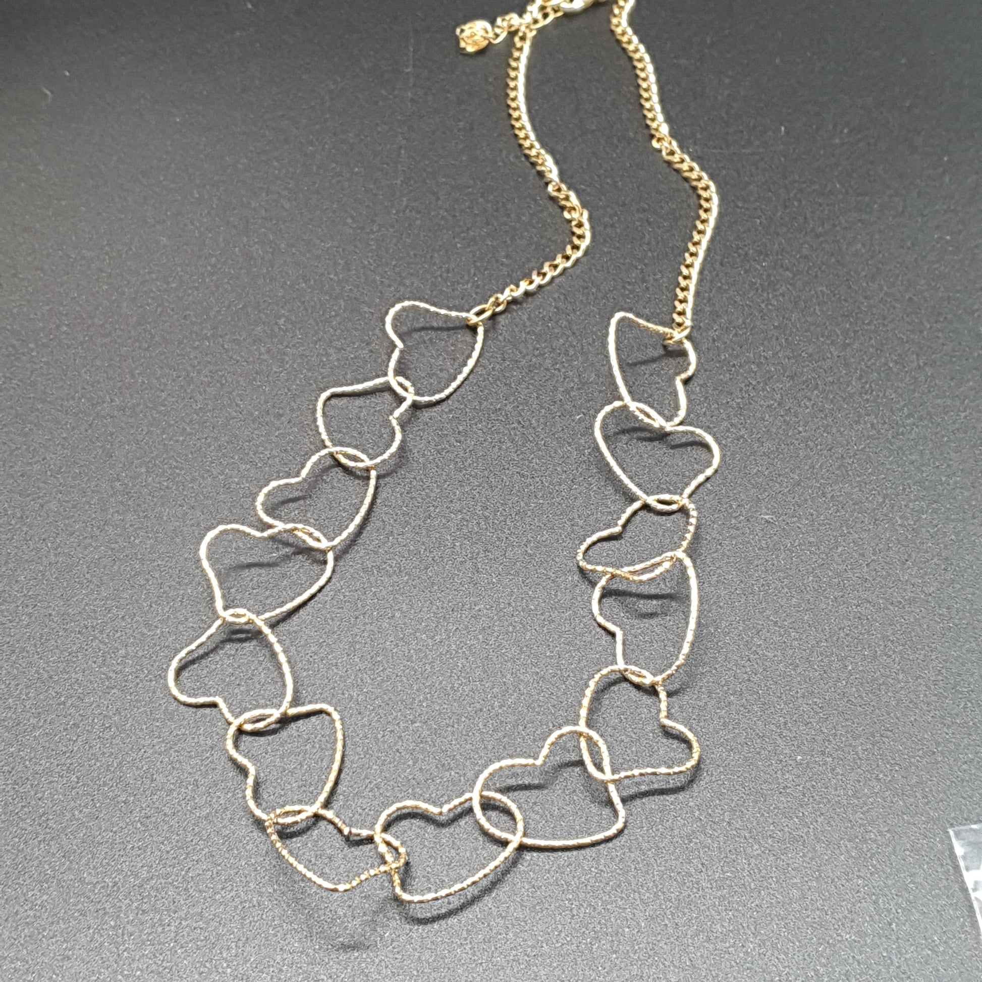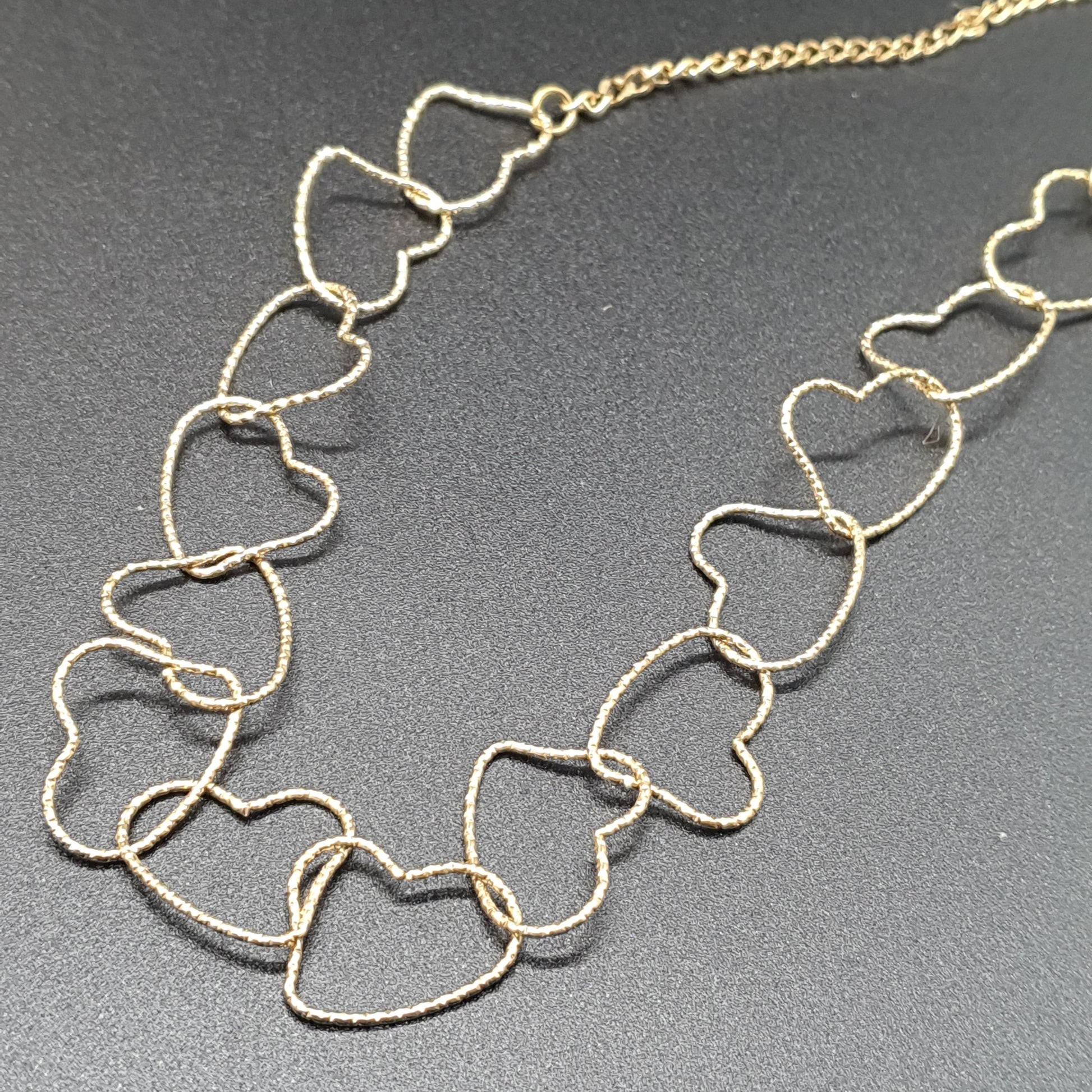 Collier acier doré chaîne fine maille forçat cœurs entrelacés métal doré
