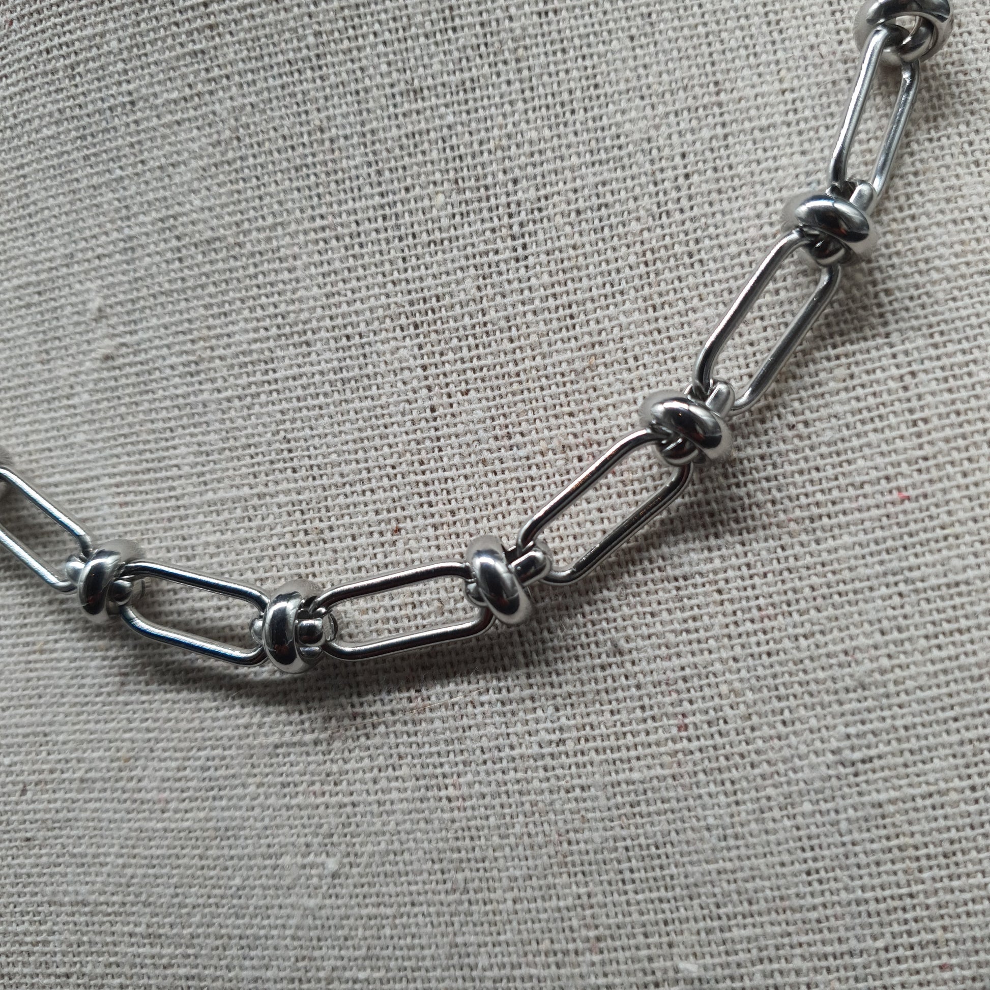 ✨ Collier moderne en acier inoxydable argenté, combinant deux types de mailles :