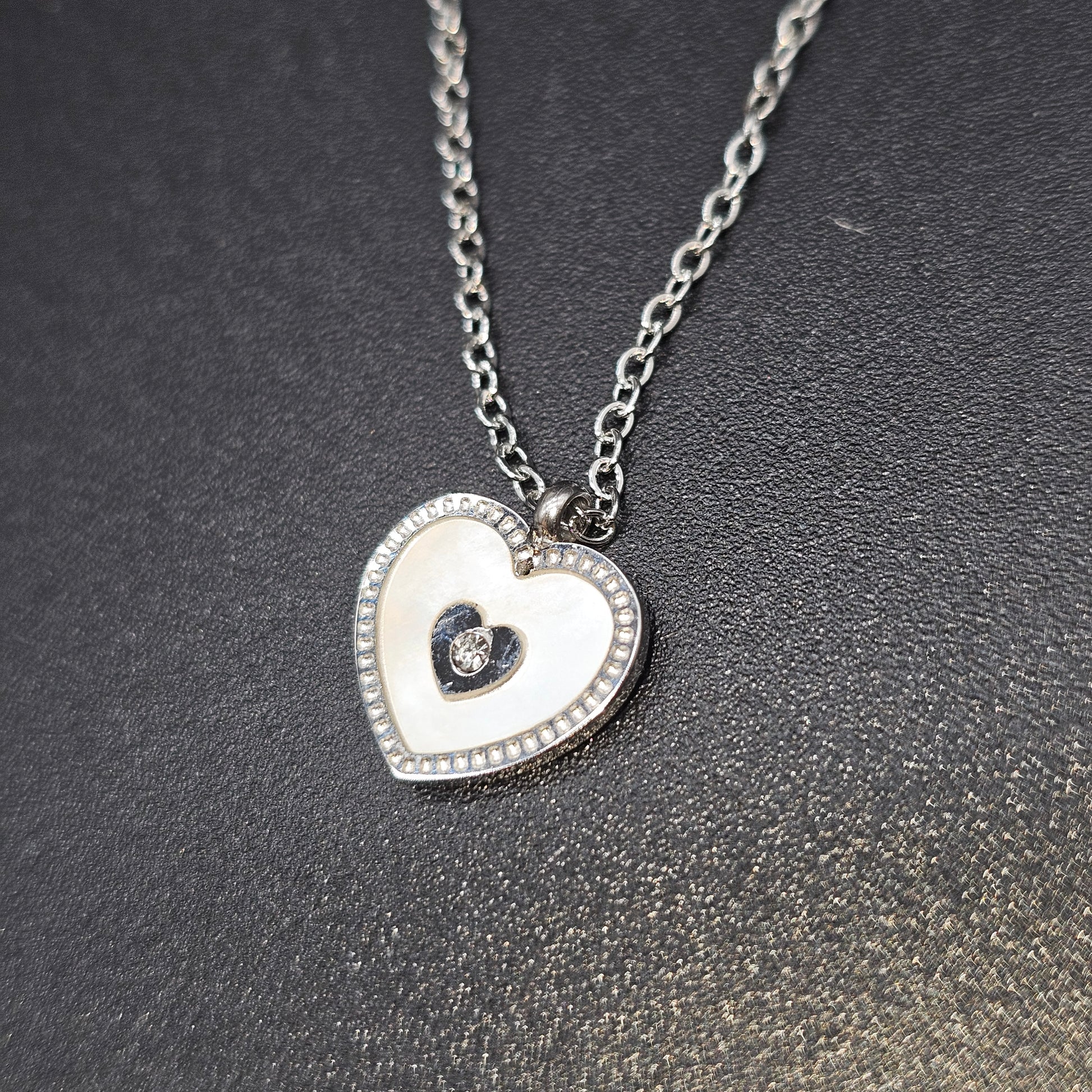 Ce magnifique collier Cœur argenté, réalisé en acier inoxydable hypoallergénique, se distingue par son pendentif ajouré au contour perlé. Lumineux et raffiné, il accompagne toutes vos tenues, du quotidien aux soirées plus habillées.