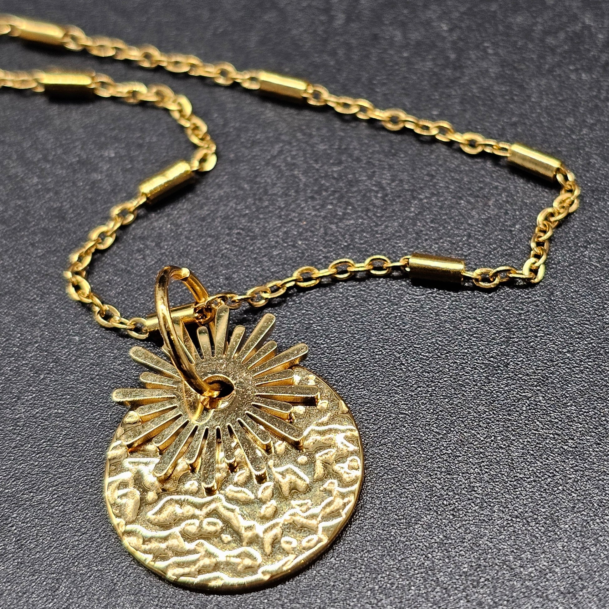 À porter seul pour une allure chic, ou en accumulation avec d'autres colliers dorés pour un look plus audacieux. Idéal avec un décolleté ou une chemise ouverte. 🌞