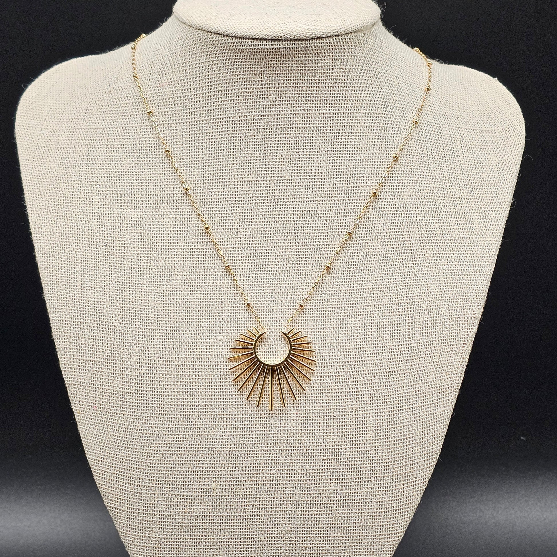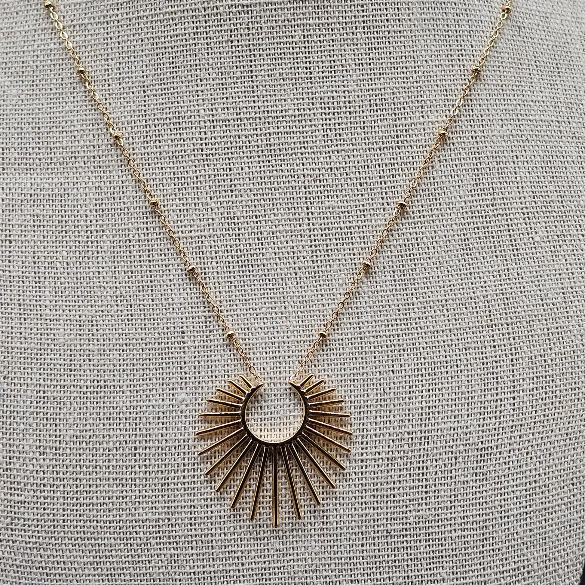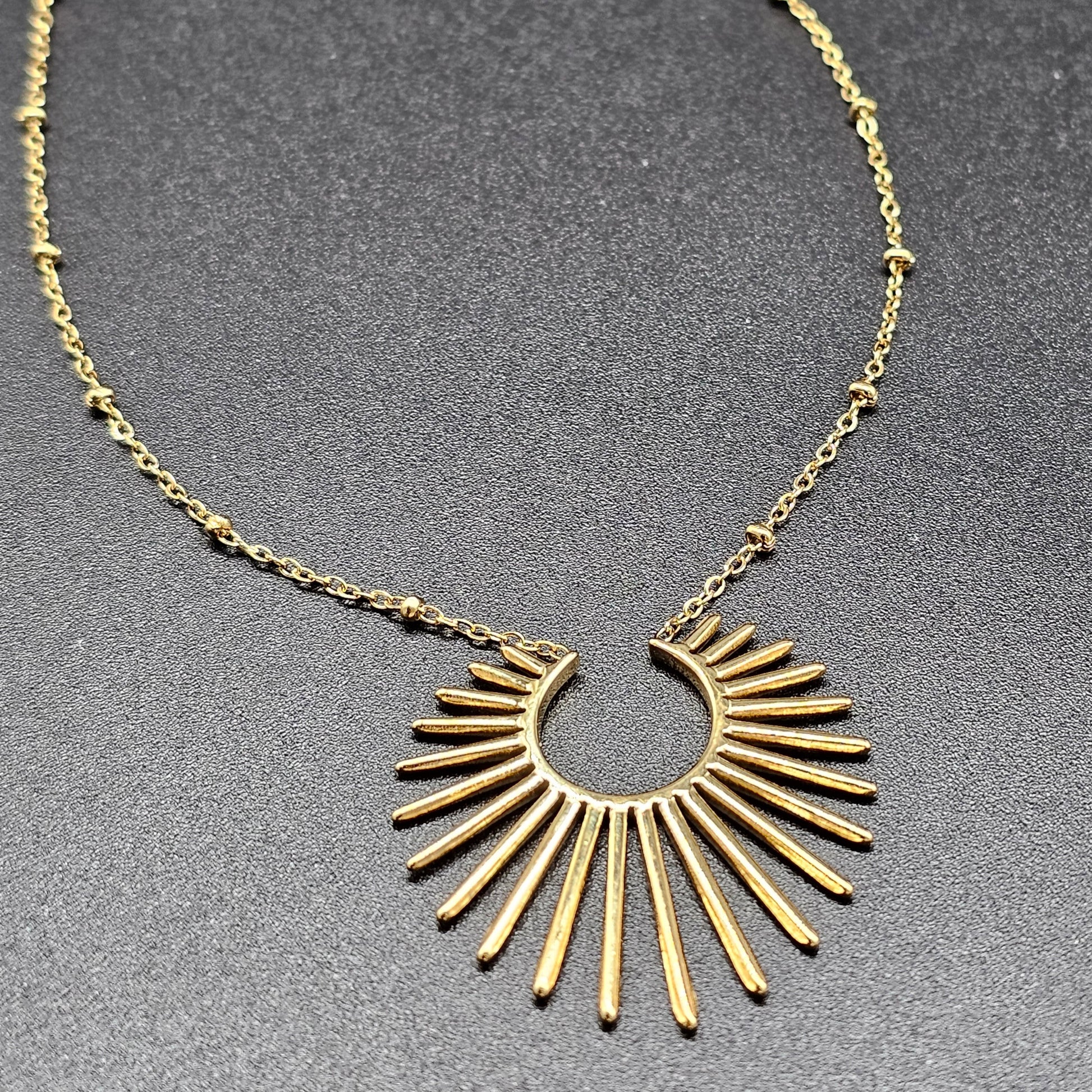 Collier acier inoxydable doré fine chaîne fantaisie maille forçat petites billes acier doré pendentif forme rayons de soleil