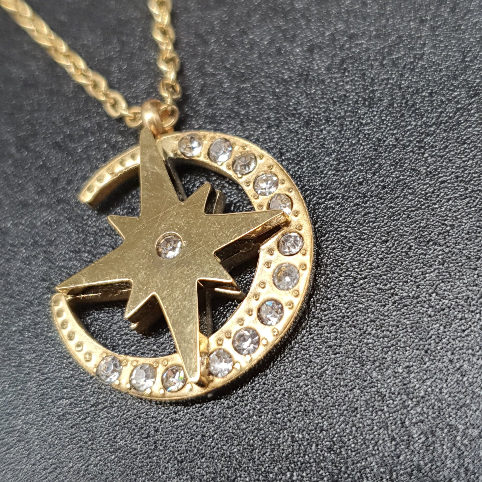 Collier acier inoxydable doré chaîne fine maille forçat pendentif lune et étoile polaire