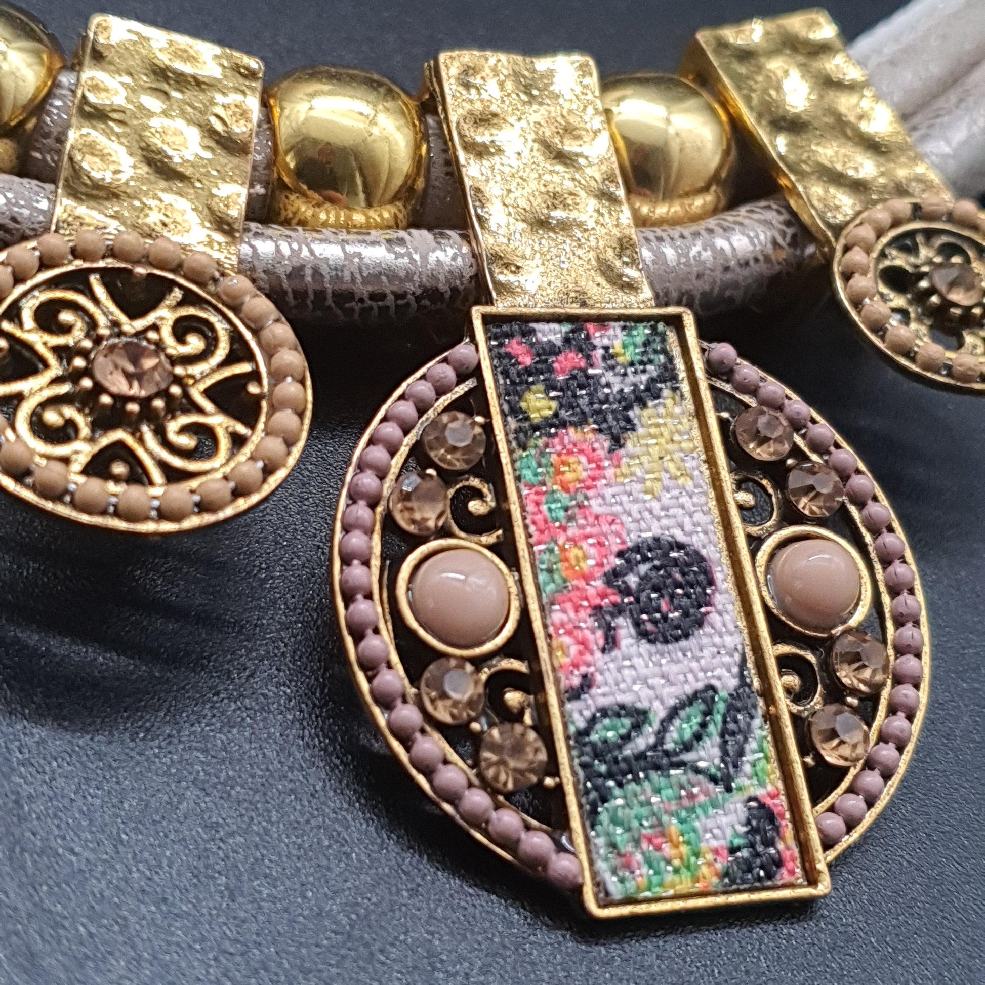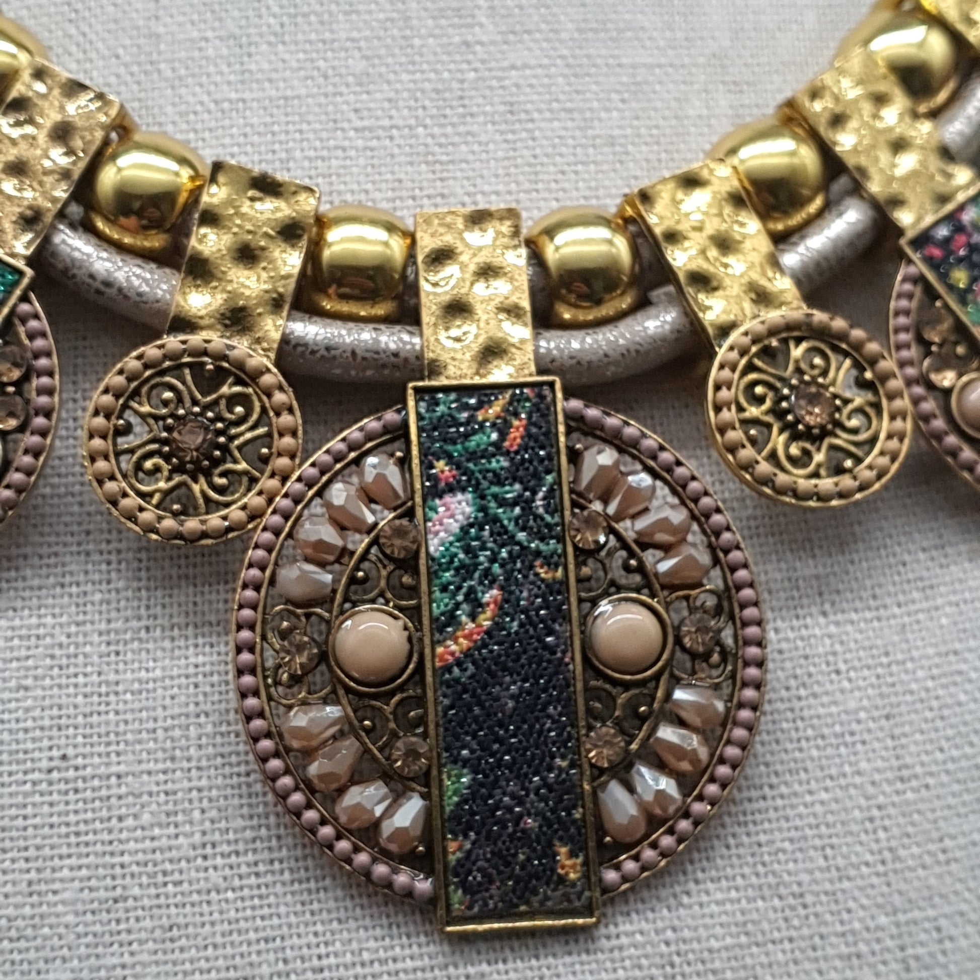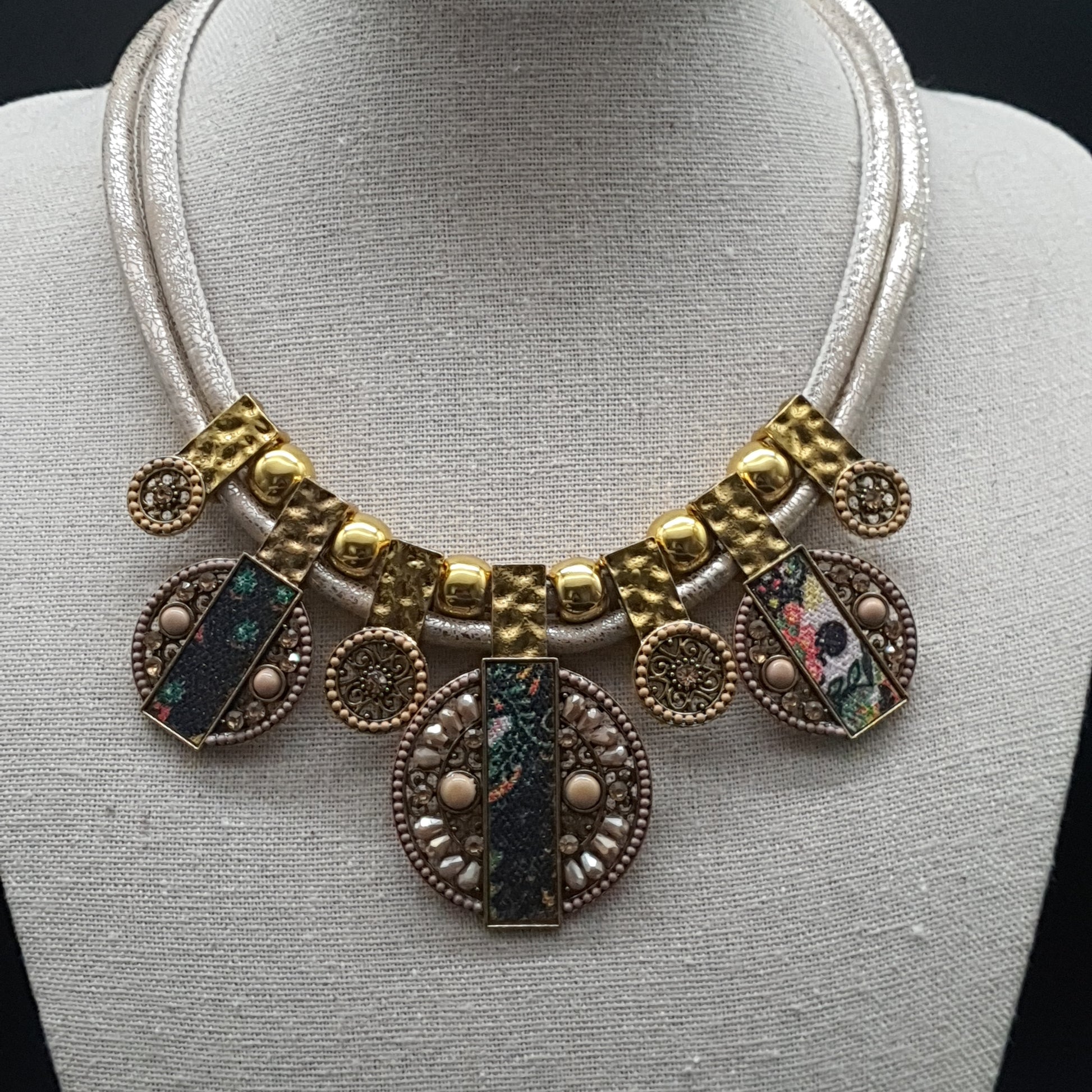 Collier plastron double cordon – tendance ethnique perles & métal martelé