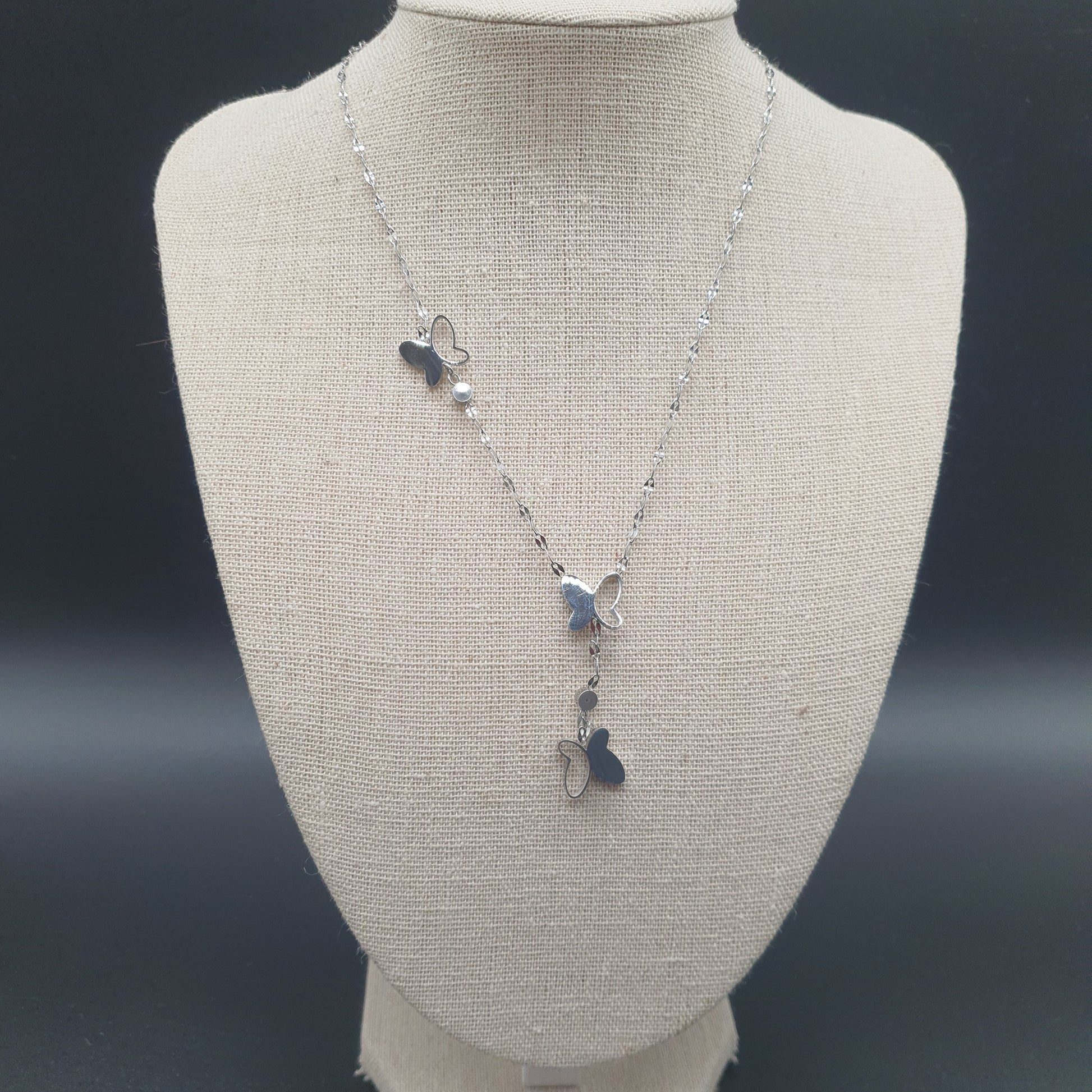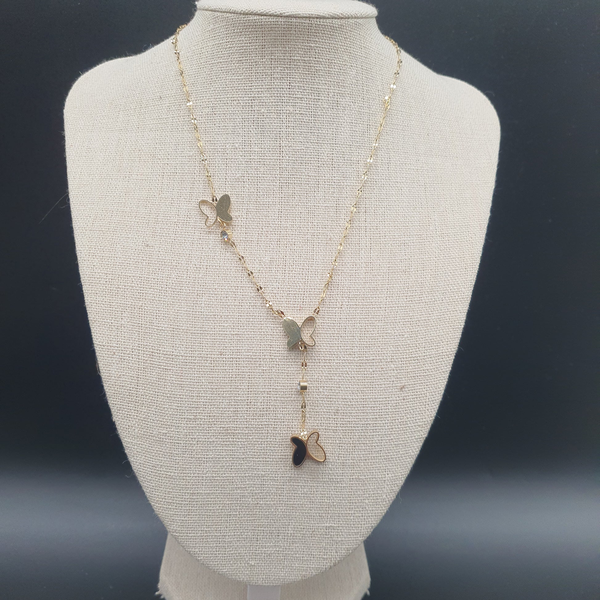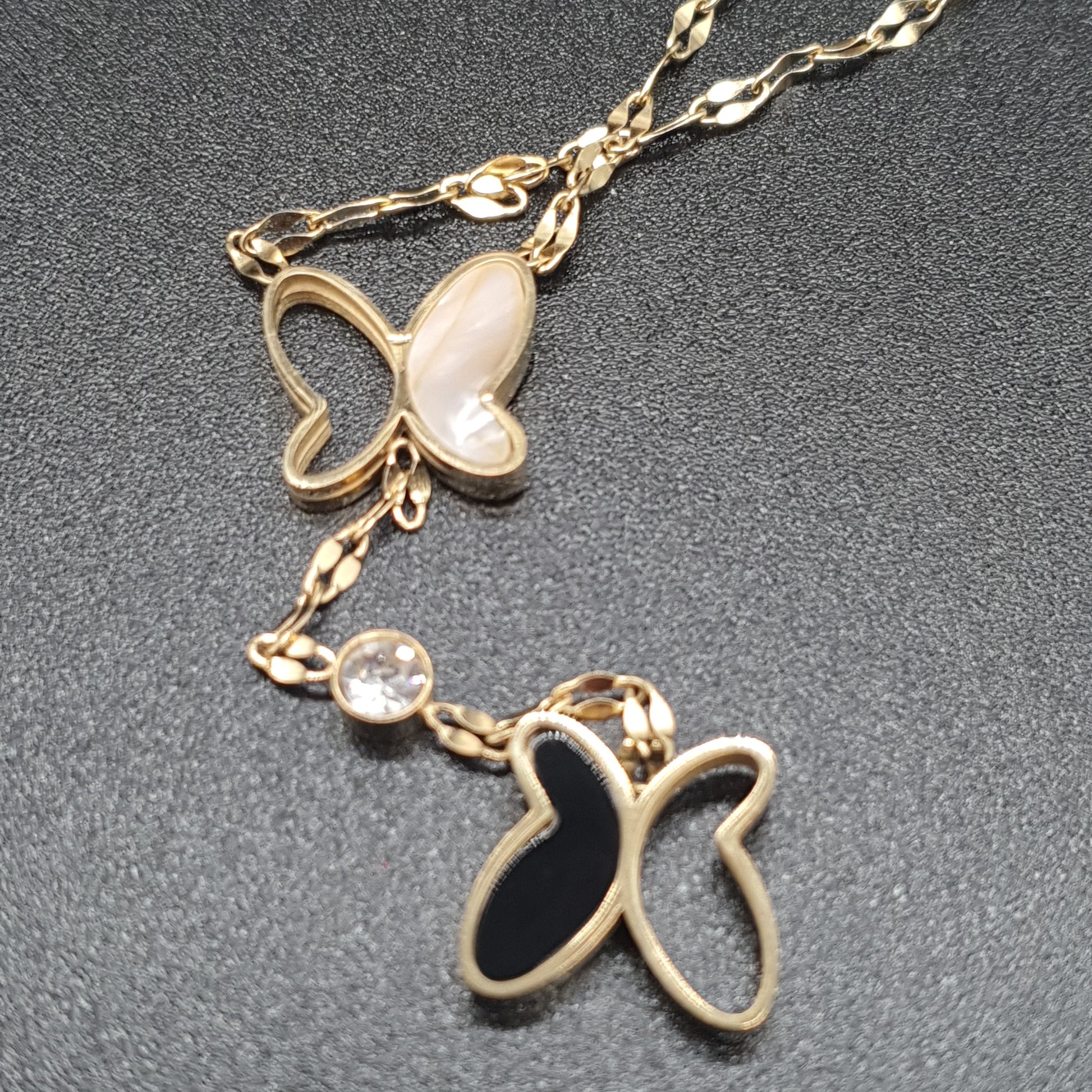 Collier sautoir acier inoxydable doré ou argenté – pendentif torsadé papillon nacre