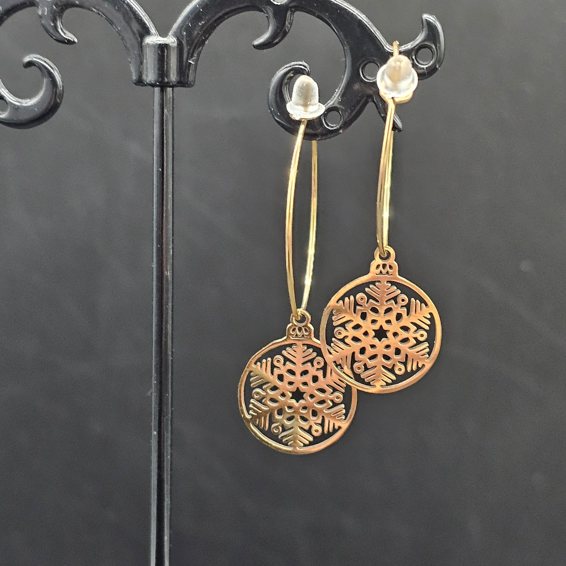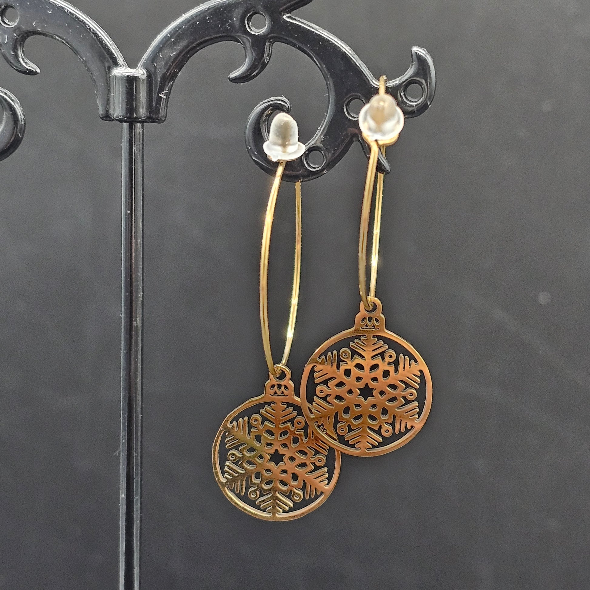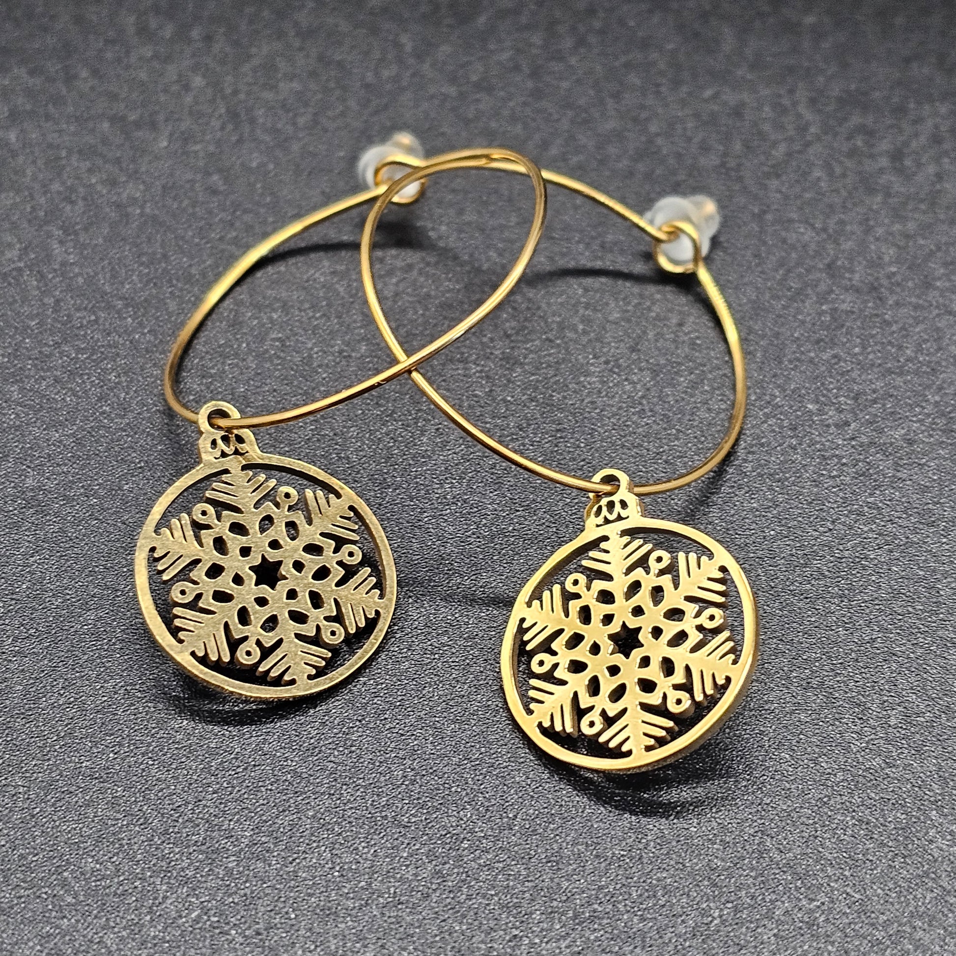 Créoles dorées – Pampille flocon filigrane en acier inoxydable