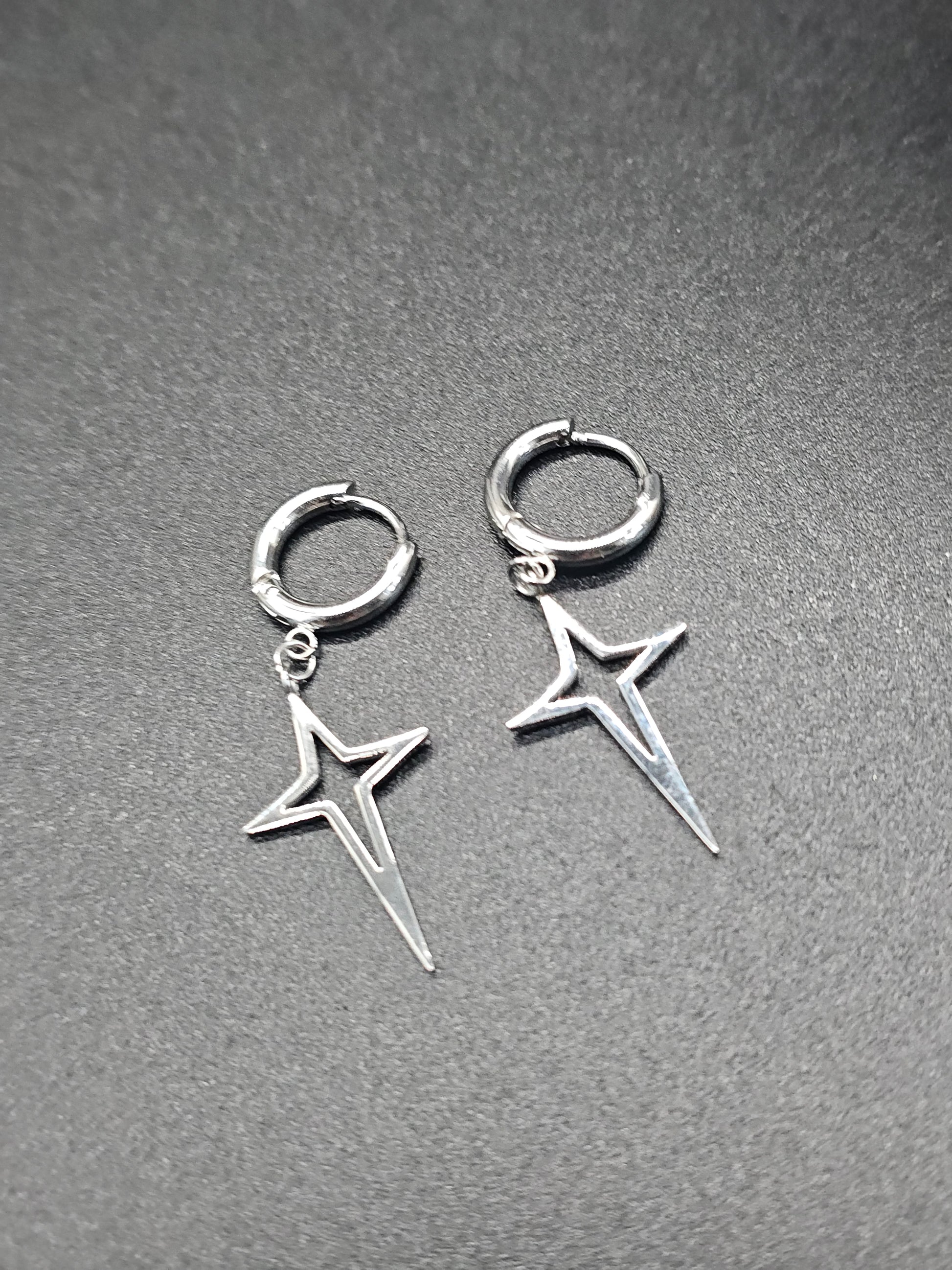 Créoles Étoile Argentée – Pendantes, acier inoxydable