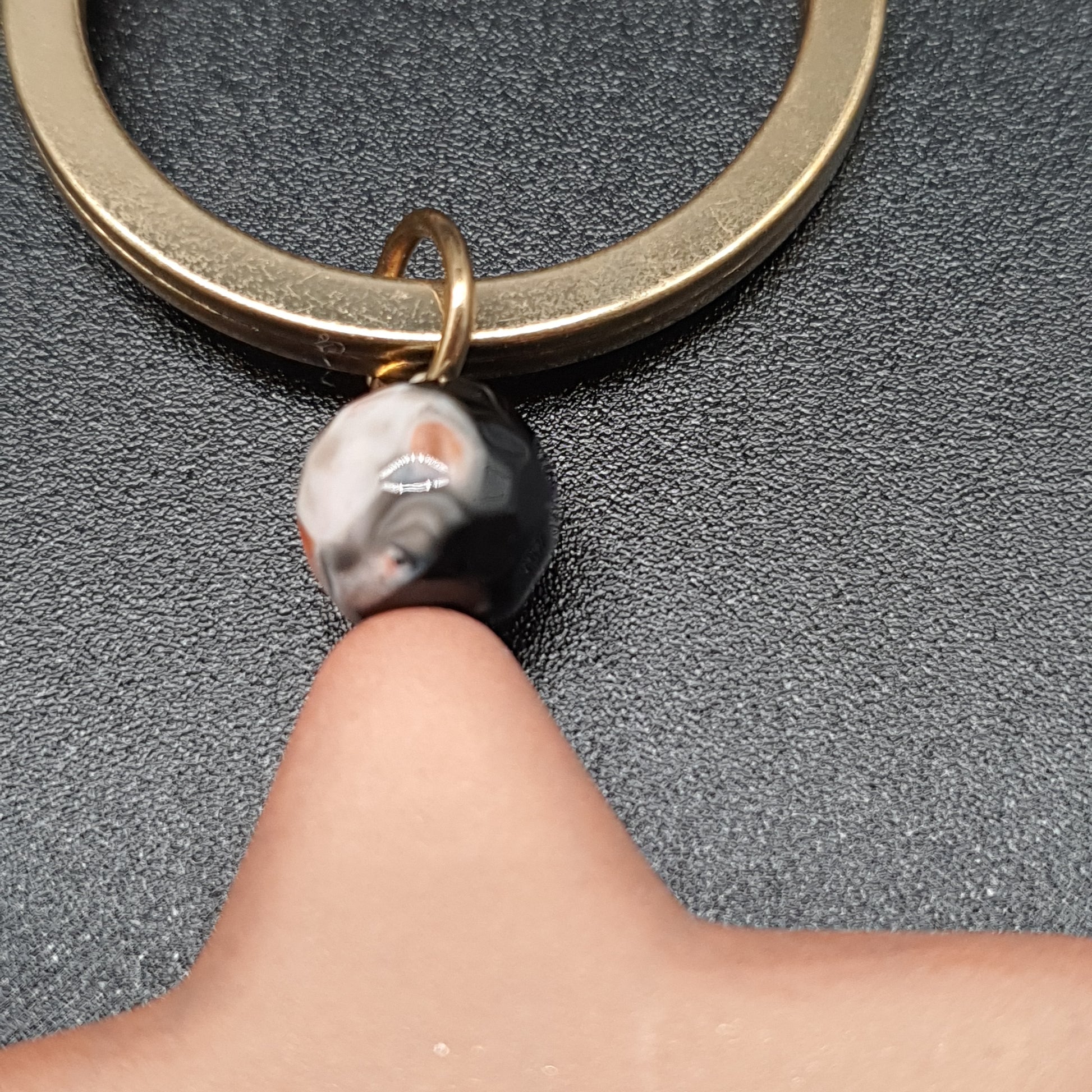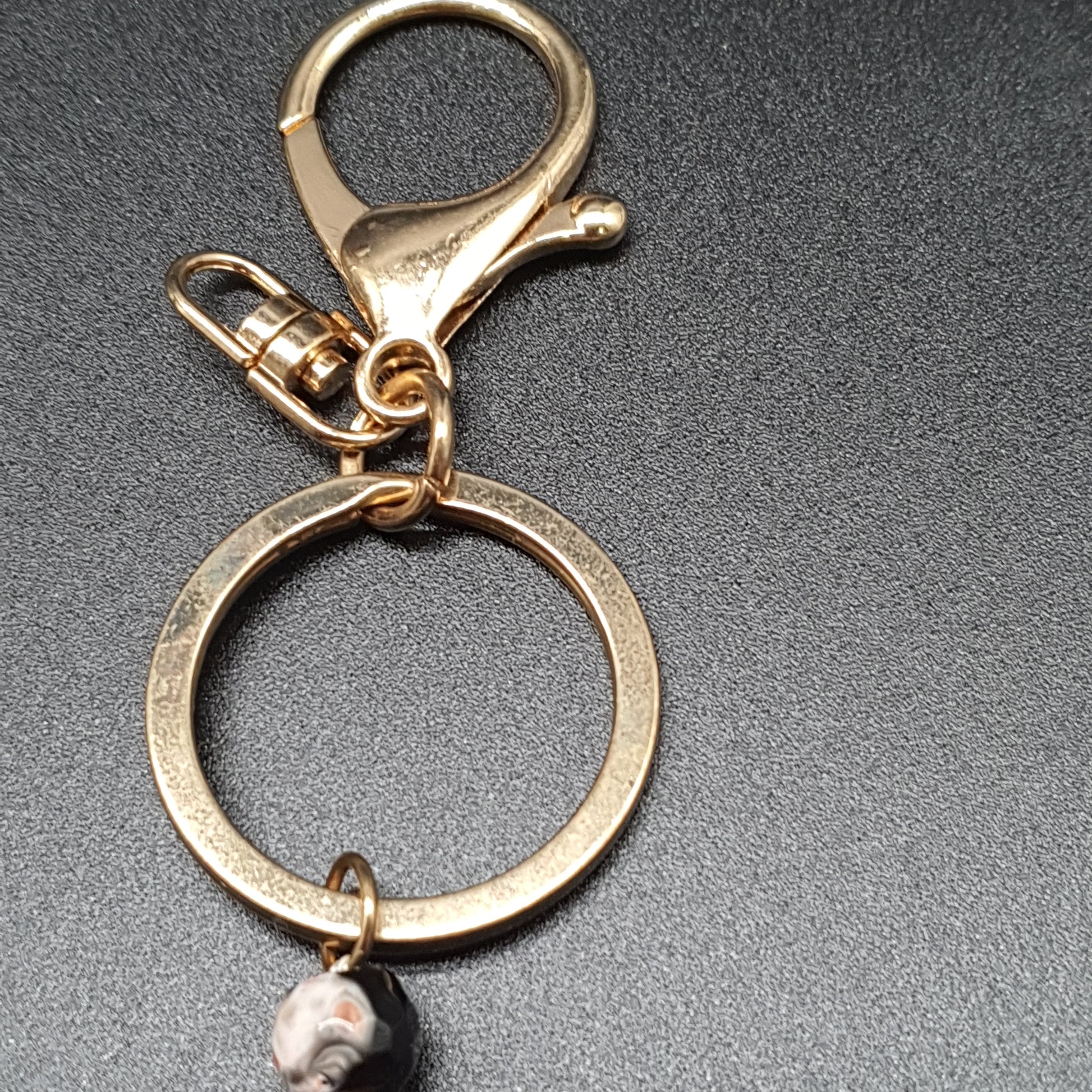 S'accroche facilement à un sac ou à un trousseau de clés grâce à son gros fermoir mousqueton en métal doré.