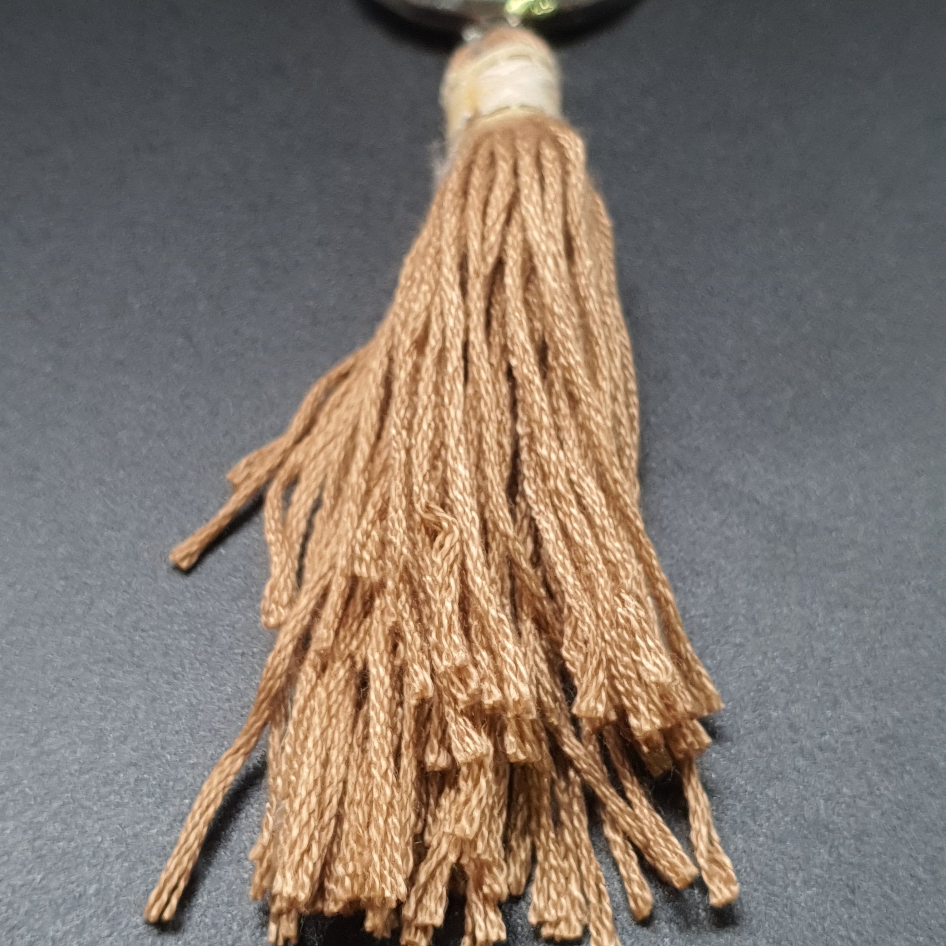 S'accroche facilement à un sac ou à un trousseau de clés grâce à son gros fermoir mousqueton en métal argenté.